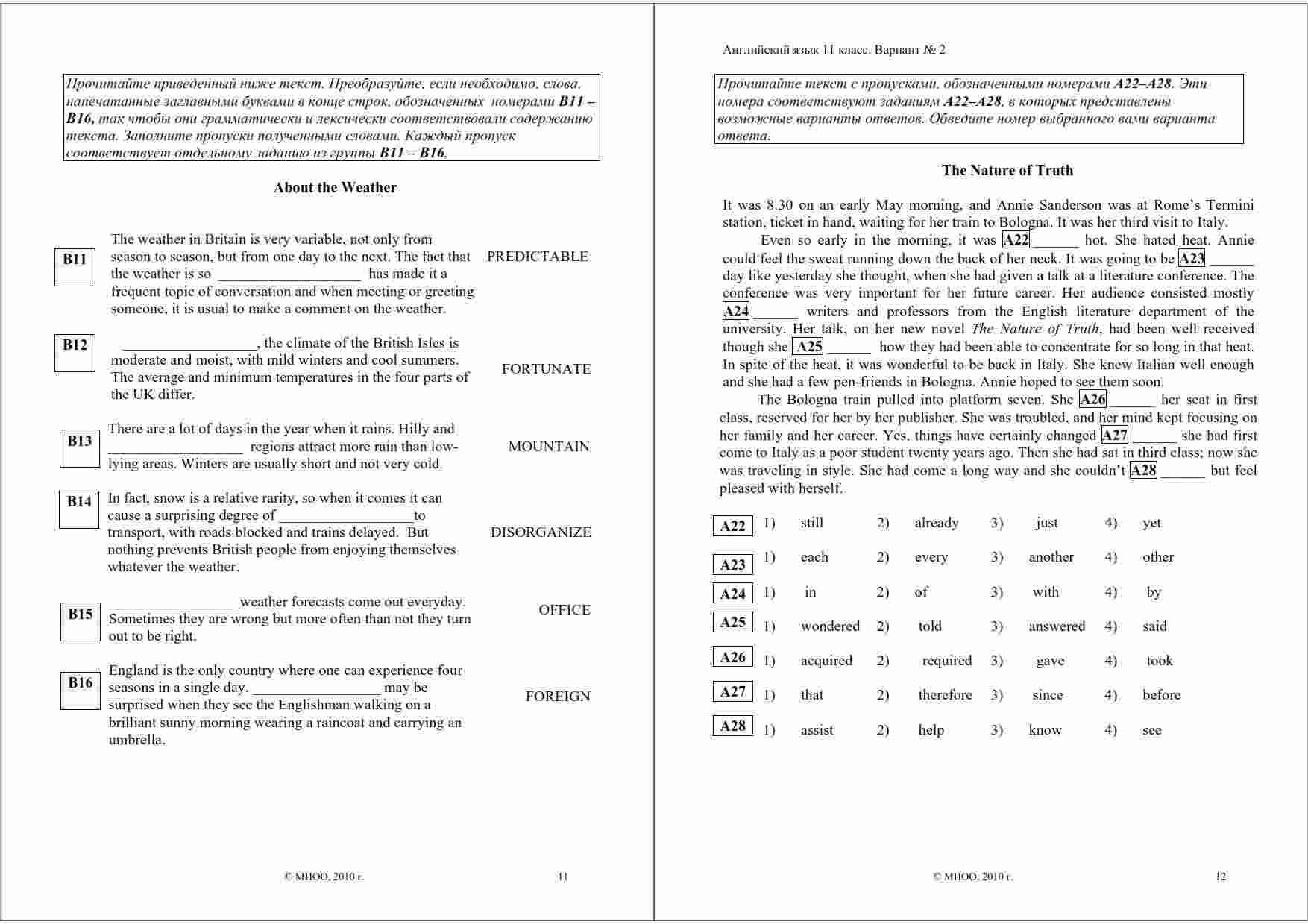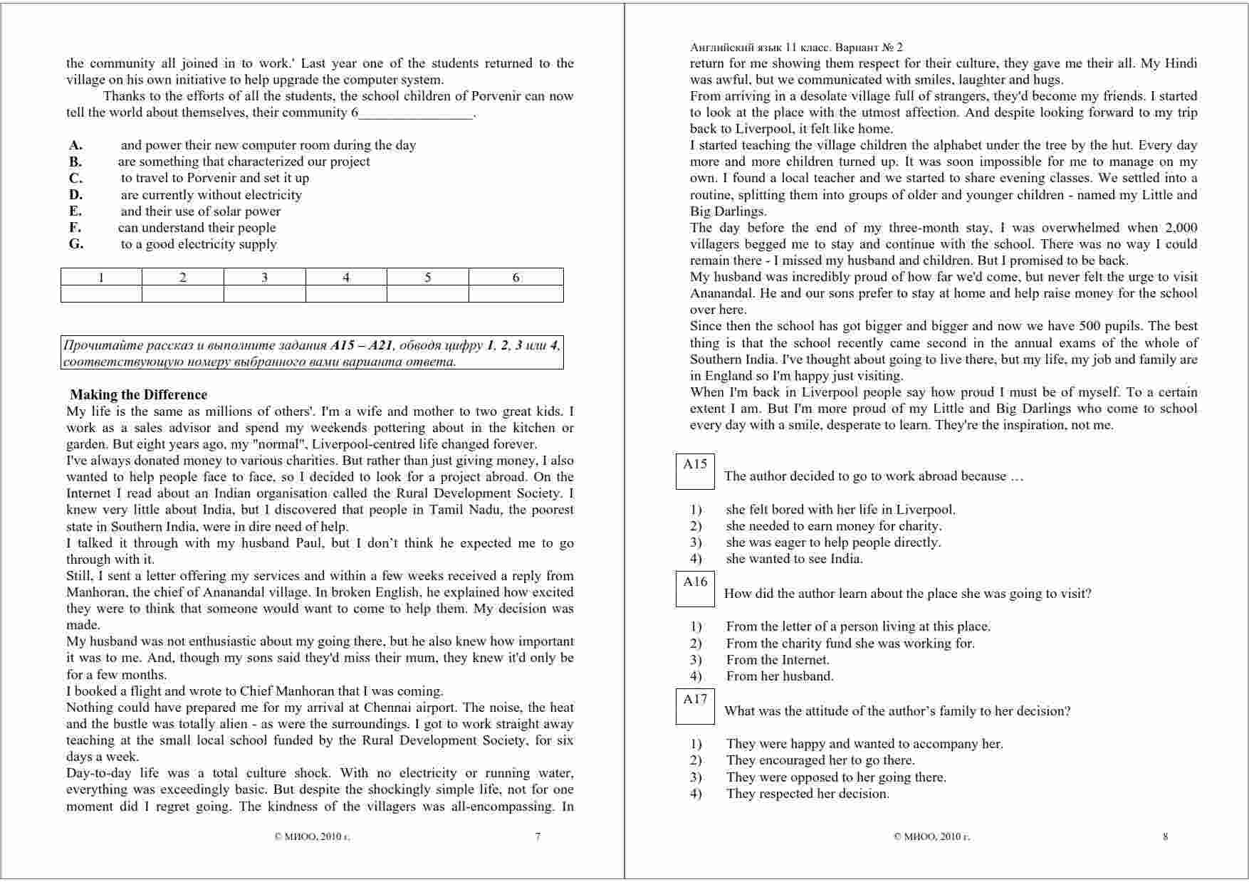 Книга "ЕГЭ 2011 Английский язык 11 класс Диагностическая работа варианты 1-2" представляет собой ценный ресурс для старшеклассников, готовящихся к сдаче ЕГЭ по английскому языку. Эта книга содержит диагностические работы с вариантами 1 и 2, созданные специально для подготовки к экзамену. Работы включают в себя задания разного уровня сложности, позволяющие студентам оценить свой уровень подготовки и выявить слабые места. Каждый вариант снабжен подробными комментариями и рекомендациями по выполнению заданий. В книге также представлены правильные ответы, что позволяет студентам самостоятельно проверить свои результаты и улучшить навыки. Дата выпуска книги - 01.12.2010 год. Это идеальный выбор для тех, кто стремится к успешной сдаче ЕГЭ по английскому языку и желает получить высокий балл.