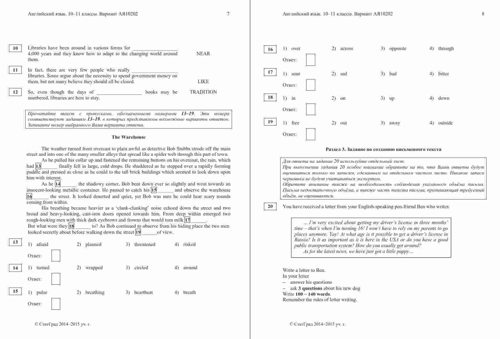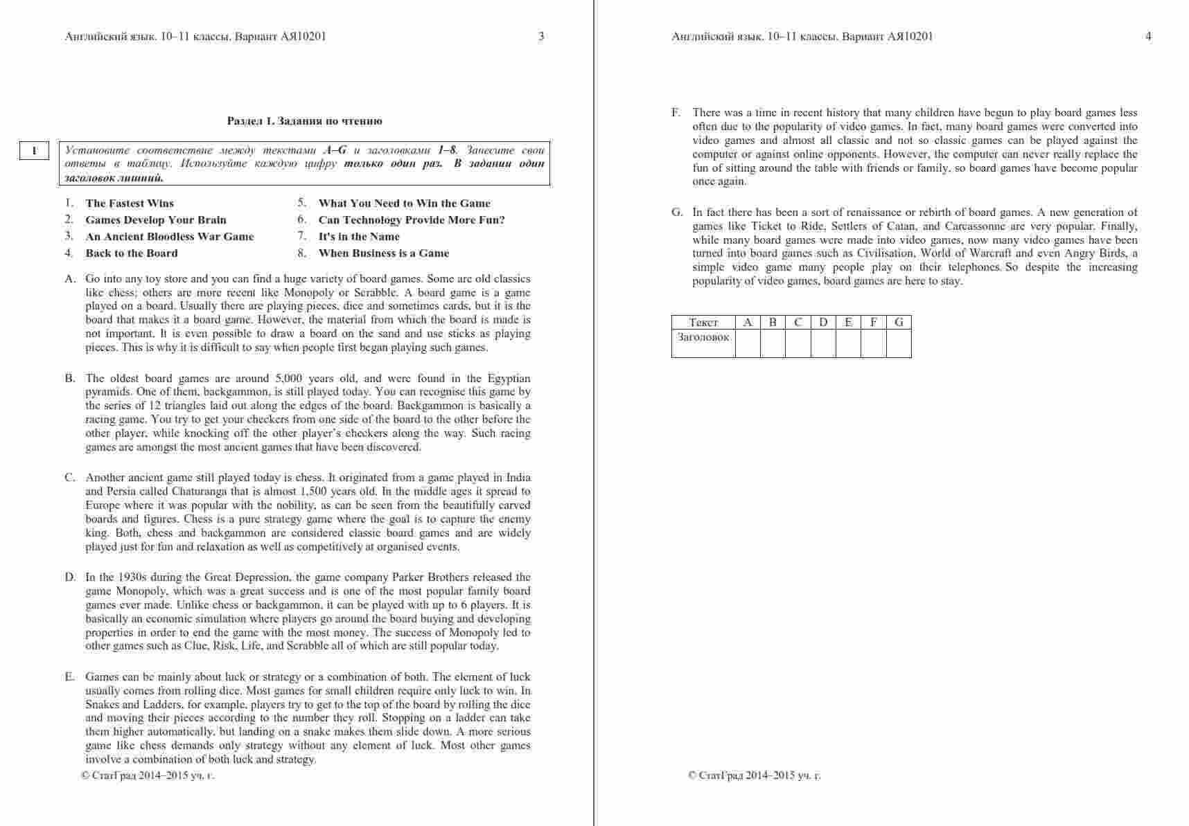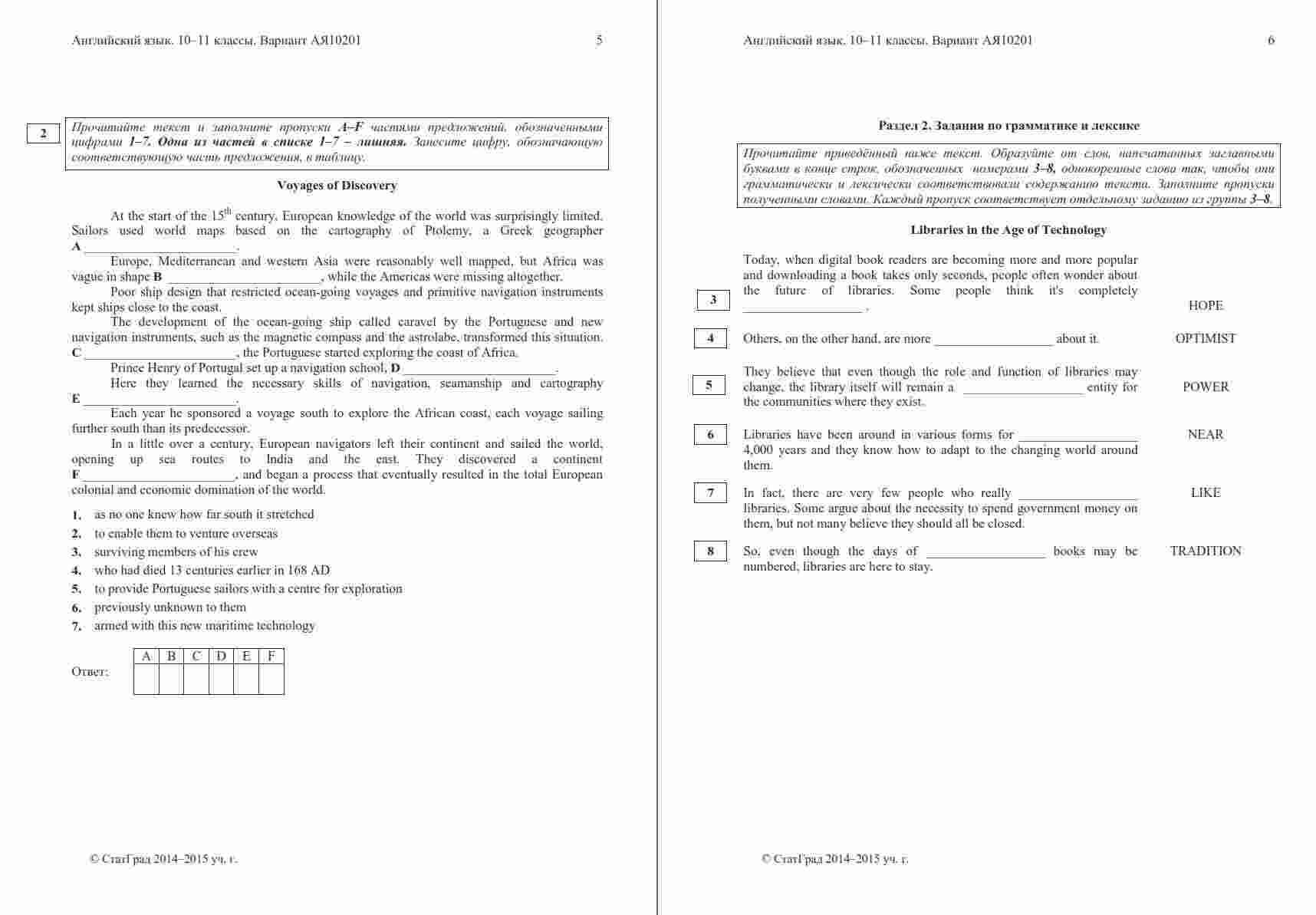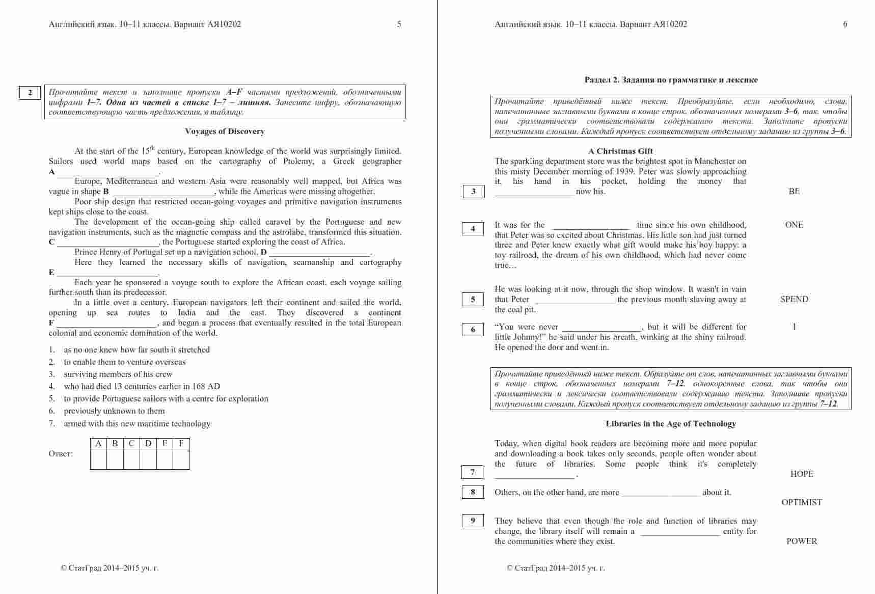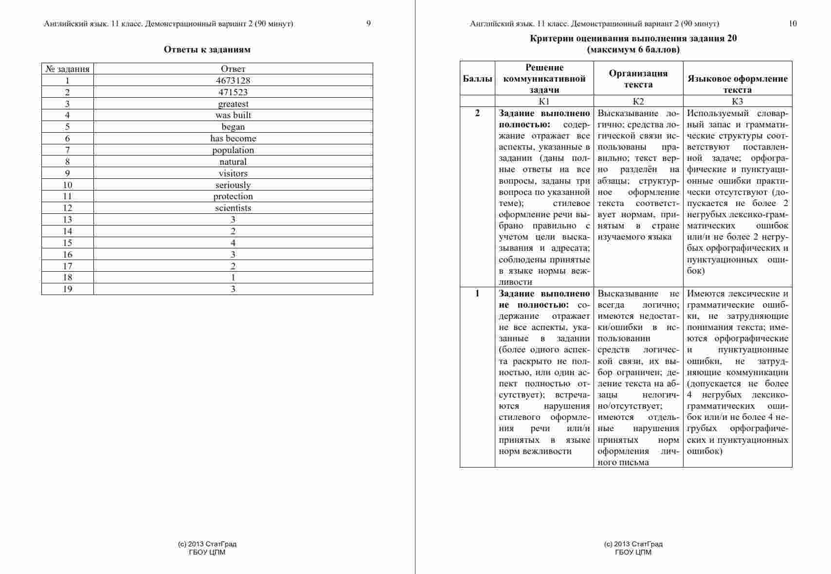 Книга "ЕГЭ Английский язык 11 класс. Чтение 10.12.2014. Ответы критерии вариант АЯ10201-2" представляет собой официальные ответы и критерии оценивания к варианту чтения на ЕГЭ по английскому языку в 11 классе. Эта книга поможет ученикам проверить свои ответы и узнать, как они оцениваются на экзамене. Книга включает в себя тексты заданий по чтению, а также подробные ответы и критерии оценивания, что позволяет ученикам сравнить свои ответы с правильными и понять, как они будут оцениваться экзаменаторами. Эта книга будет полезной как для учеников, готовящихся к ЕГЭ по английскому языку, так и для их учителей, чтобы предоставить дополнительные материалы для анализа и обсуждения результатов чтения на экзамене.