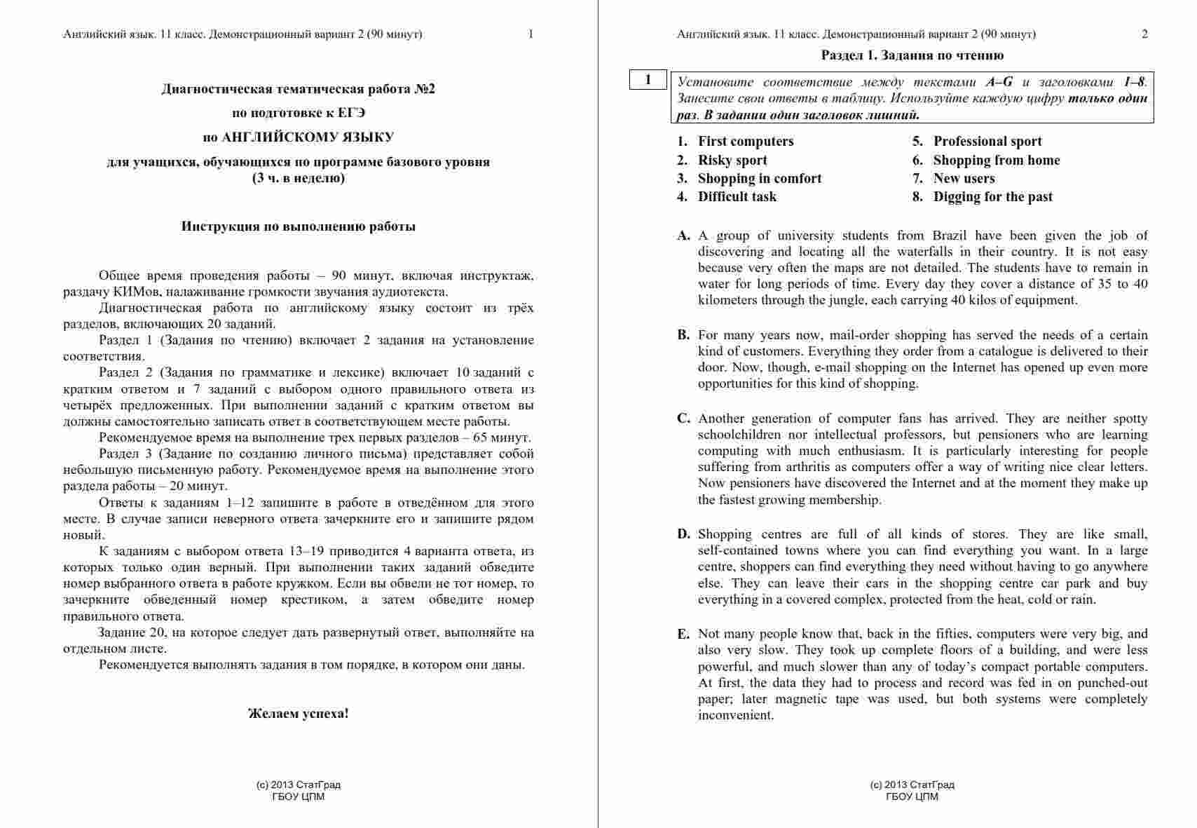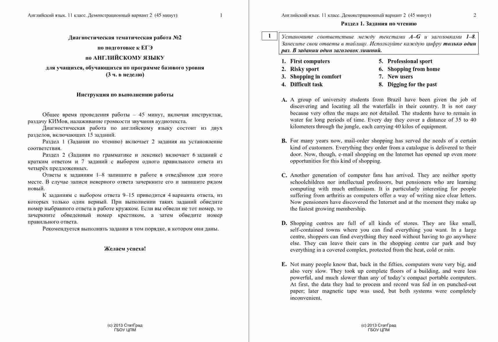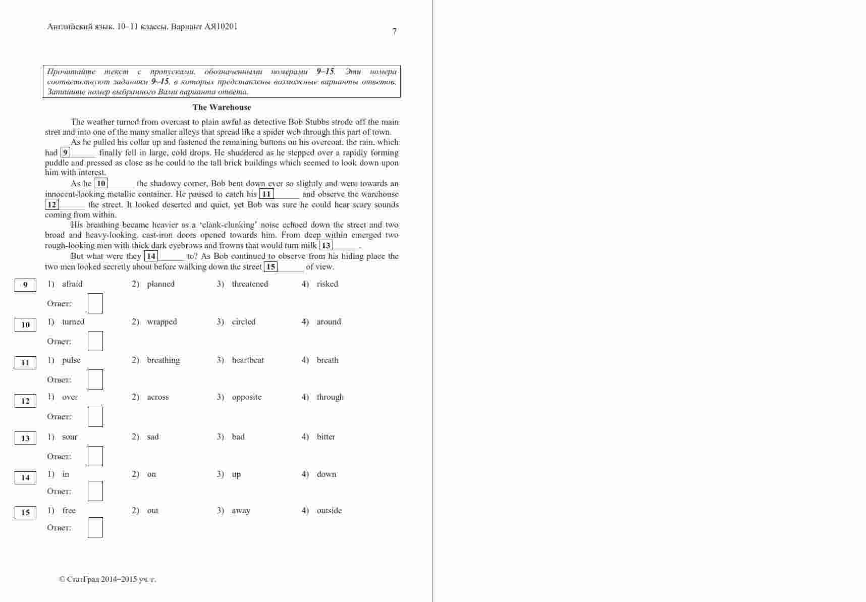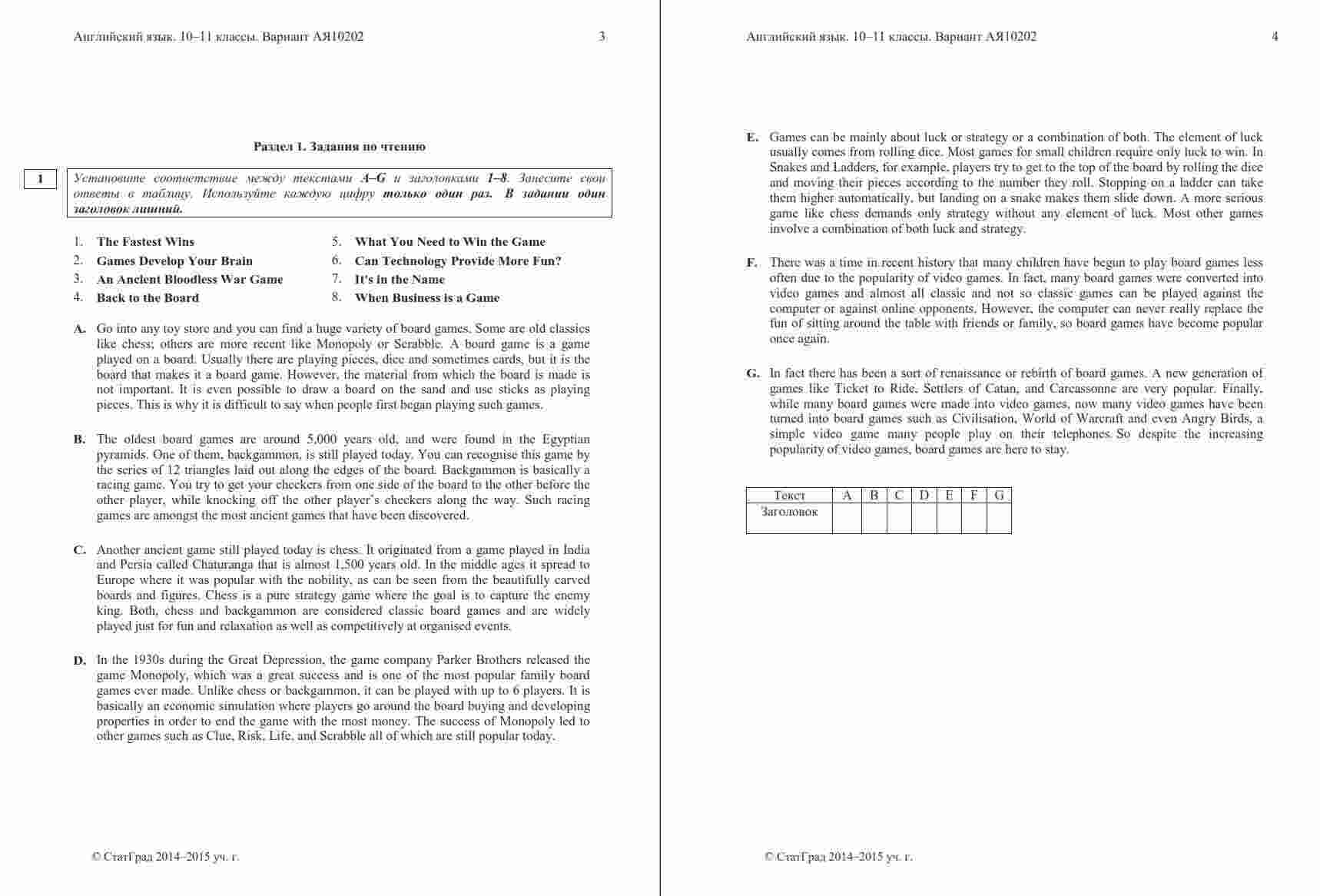 Книга "ЕГЭ Английский язык 11 класс. Чтение 10.12.2014. Ответы критерии вариант АЯ10201-2" представляет собой официальные ответы и критерии оценивания к варианту чтения на ЕГЭ по английскому языку в 11 классе. Эта книга поможет ученикам проверить свои ответы и узнать, как они оцениваются на экзамене. Книга включает в себя тексты заданий по чтению, а также подробные ответы и критерии оценивания, что позволяет ученикам сравнить свои ответы с правильными и понять, как они будут оцениваться экзаменаторами. Эта книга будет полезной как для учеников, готовящихся к ЕГЭ по английскому языку, так и для их учителей, чтобы предоставить дополнительные материалы для анализа и обсуждения результатов чтения на экзамене.