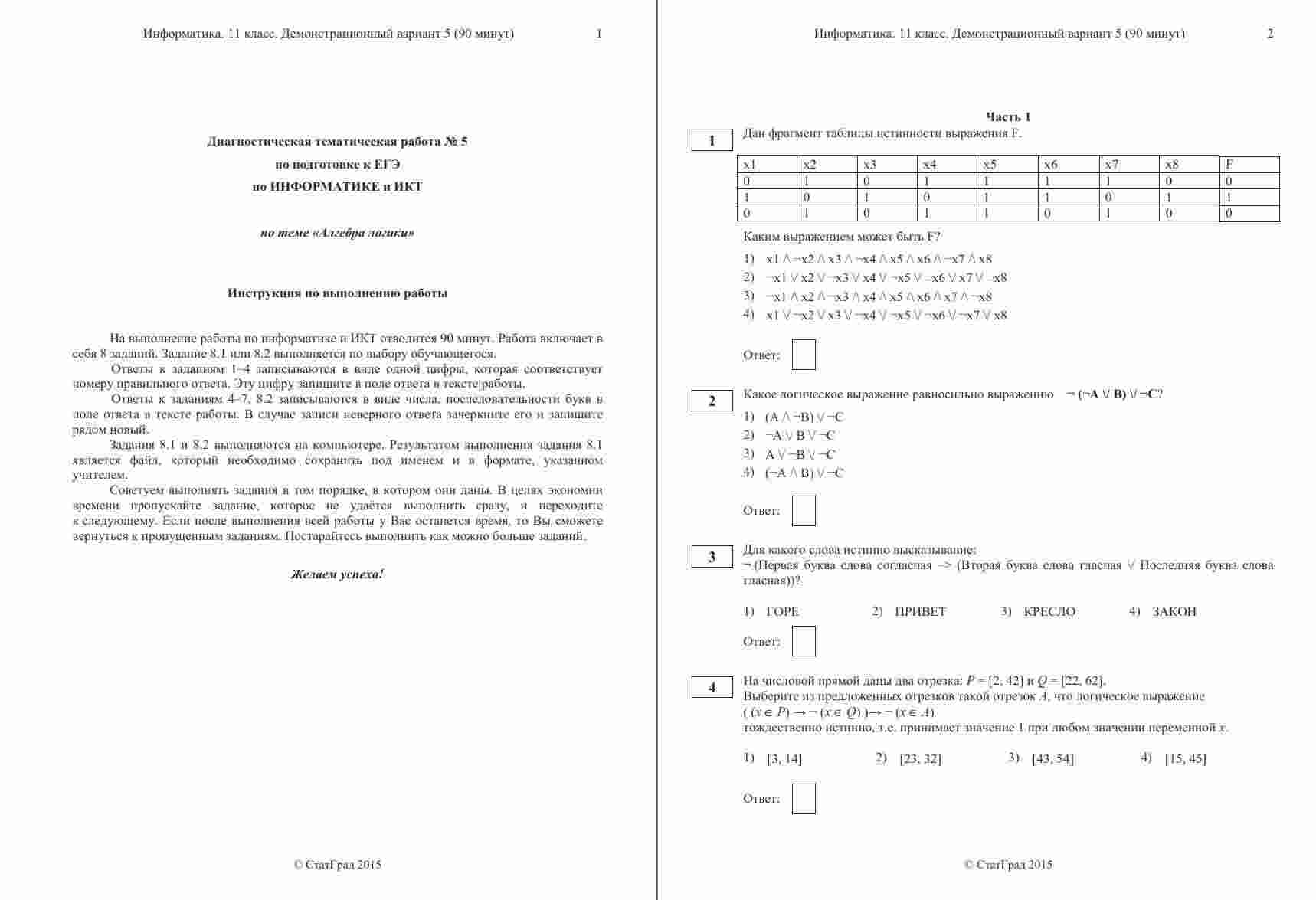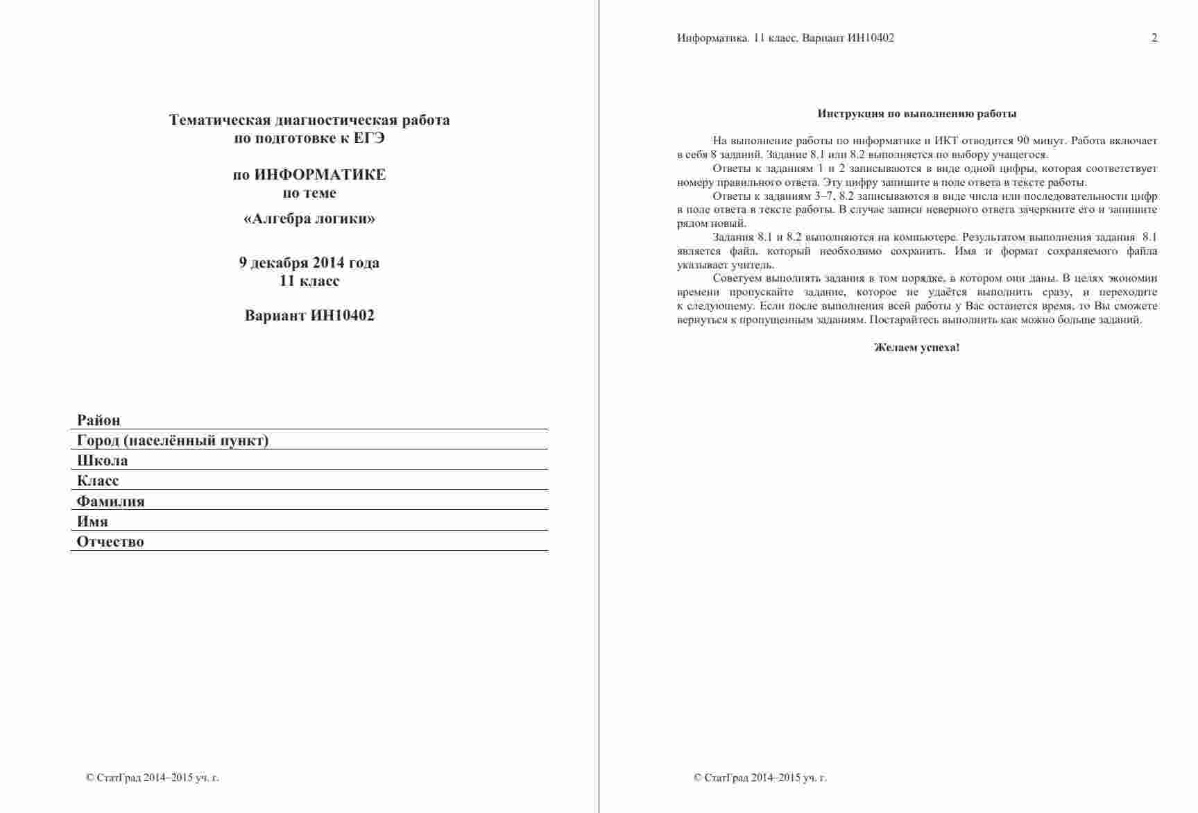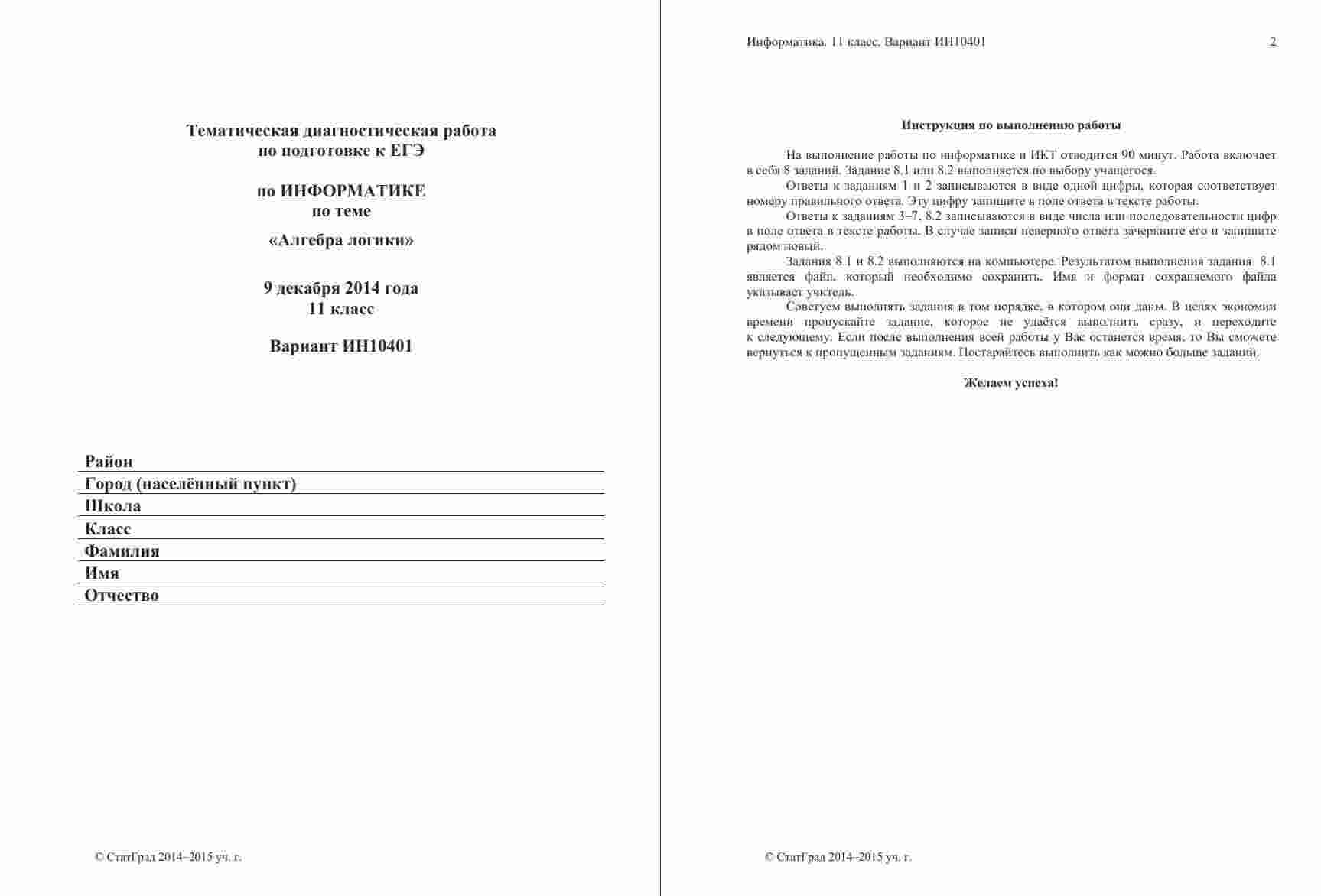 Тренировочный вариант "ЕГЭ 2014 Информатика 11 класс тема Алгебра логики" представляет собой задания, сосредоточенные на теме алгебры логики. Этот вариант полностью соответствует формату и структуре официального экзамена и предоставляет вам возможность проверить свои знания в данной теме. Вариант снабжен ответами и критериями оценивания, что позволит вам самостоятельно проверить свои результаты и выявить слабые места. С этим тренировочным вариантом вы сможете максимально эффективно подготовиться к разделу алгебры логики ЕГЭ по информатике.