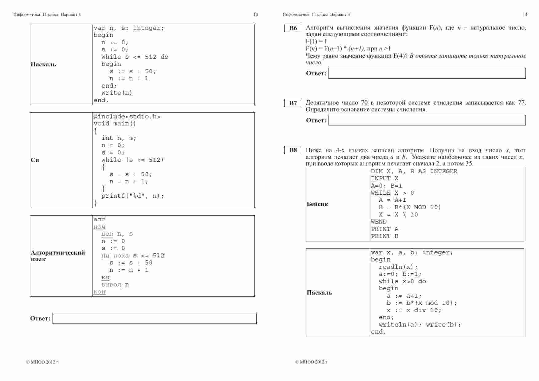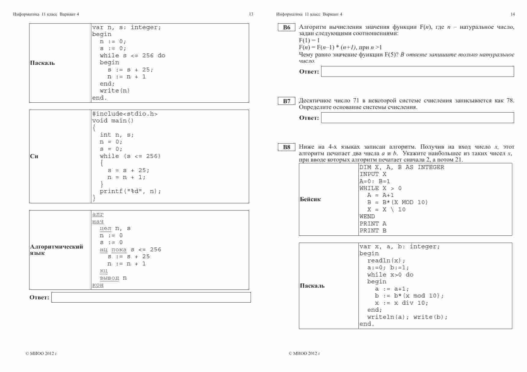 "ЕГЭ 2013 Информатика 11 класс Тренировочная работа 1 варианты 3-4" - это отличный ресурс для старшеклассников, готовящихся к сдаче ЕГЭ по информатике. Эта книга предоставляет первые два тренировочных варианта, разработанных на основе официальных требований и стандартов ЕГЭ. Каждый из вариантов включает в себя разнообразные задания, позволяющие ученикам оценить свои знания и навыки в области информатики. Задания охватывают широкий спектр тем, представленных на экзамене, и позволяют студентам подготовиться к ним. Книга также предоставляет подробные ответы и пояснения к заданиям, что помогает ученикам лучше понять материал и выявить слабые места в своей подготовке. Этот ресурс также полезен для учителей, которые могут использовать его в учебном процессе. "ЕГЭ 2013 Информатика 11 класс Тренировочная работа 1 варианты 3-4" - это надежный помощник в подготовке к ЕГЭ по информатике, который поможет ученикам достичь высоких результатов на экзамене.