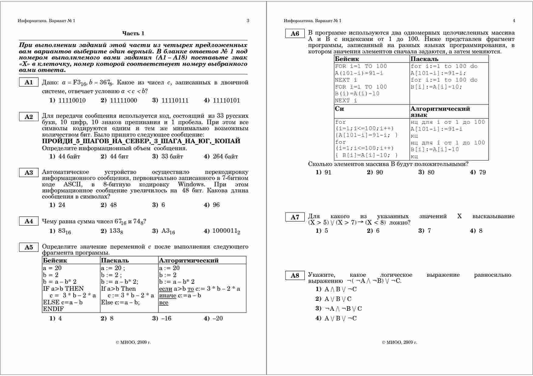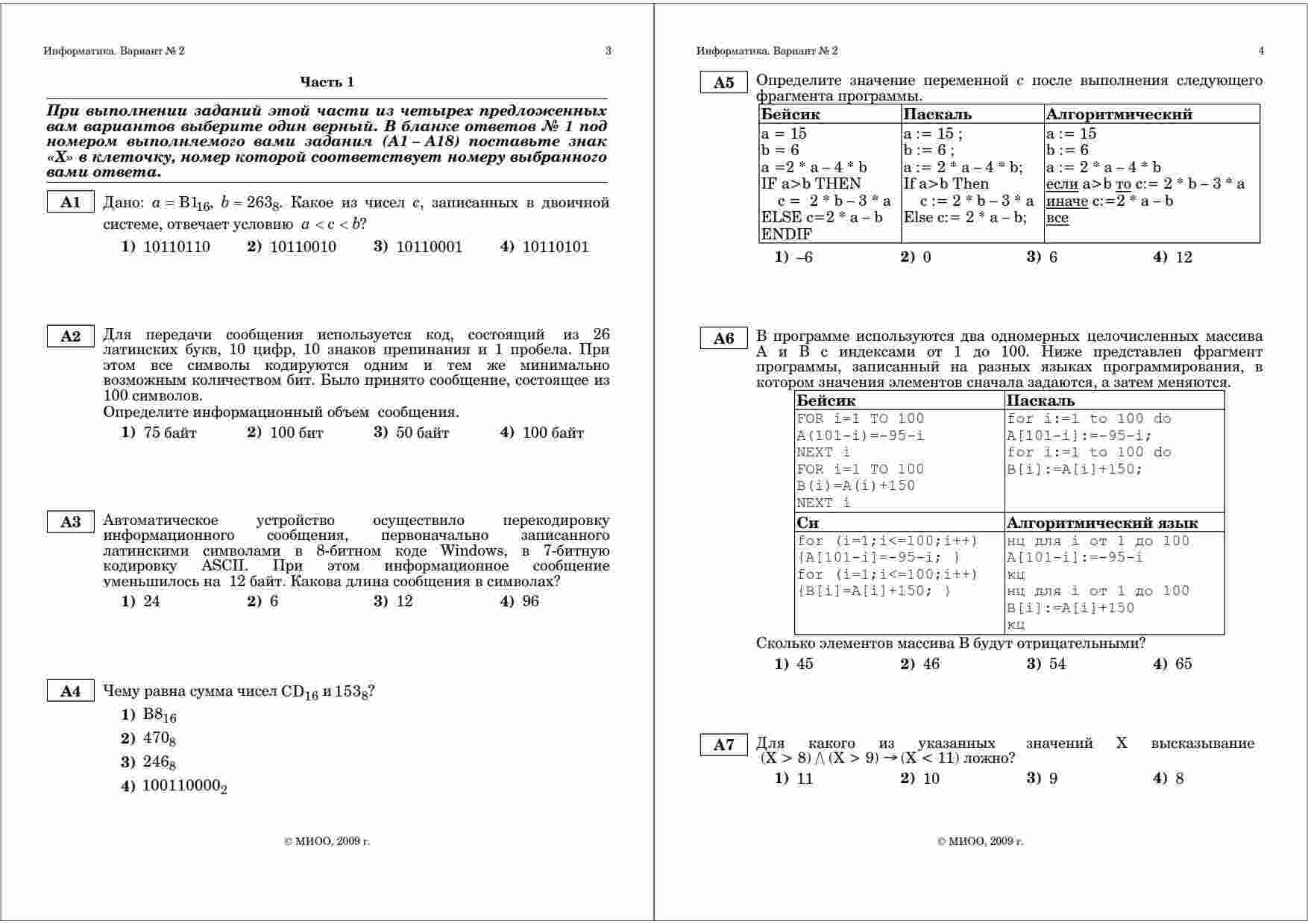Книга "ЕГЭ 2010 Информатика 11 класс Тренировочная работа 2 варианты 1-2.11.2009 год" представляет собой уникальный ресурс для подготовки к экзамену по информатике. Эта книга содержит два варианта тренировочных работ, разработанных специально для 11 класса. Она идеально подходит для тех, кто стремится успешно справиться с ЕГЭ по информатике. Каждый из двух вариантов представляет собой полноценное тестирование, которое позволяет проверить и улучшить ваши знания и навыки в области информатики. Варианты включают в себя разнообразные задания, покрывающие различные темы программирования, алгоритмов и базовых понятий информатики. Книга также предоставляет подробные объяснения и решения задач, что делает ее незаменимым инструментом для самостоятельной подготовки. Вы сможете легко отслеживать свой прогресс и исправлять ошибки благодаря четким и понятным ответам к каждому заданию. Дата проведения тренировочных работ – 1-2 ноября 2009 года. Это идеальное время для того, чтобы приступить к системной подготовке к ЕГЭ. С помощью этой книги вы сможете убедиться в своей готовности к экзамену и успешно справиться с ним.