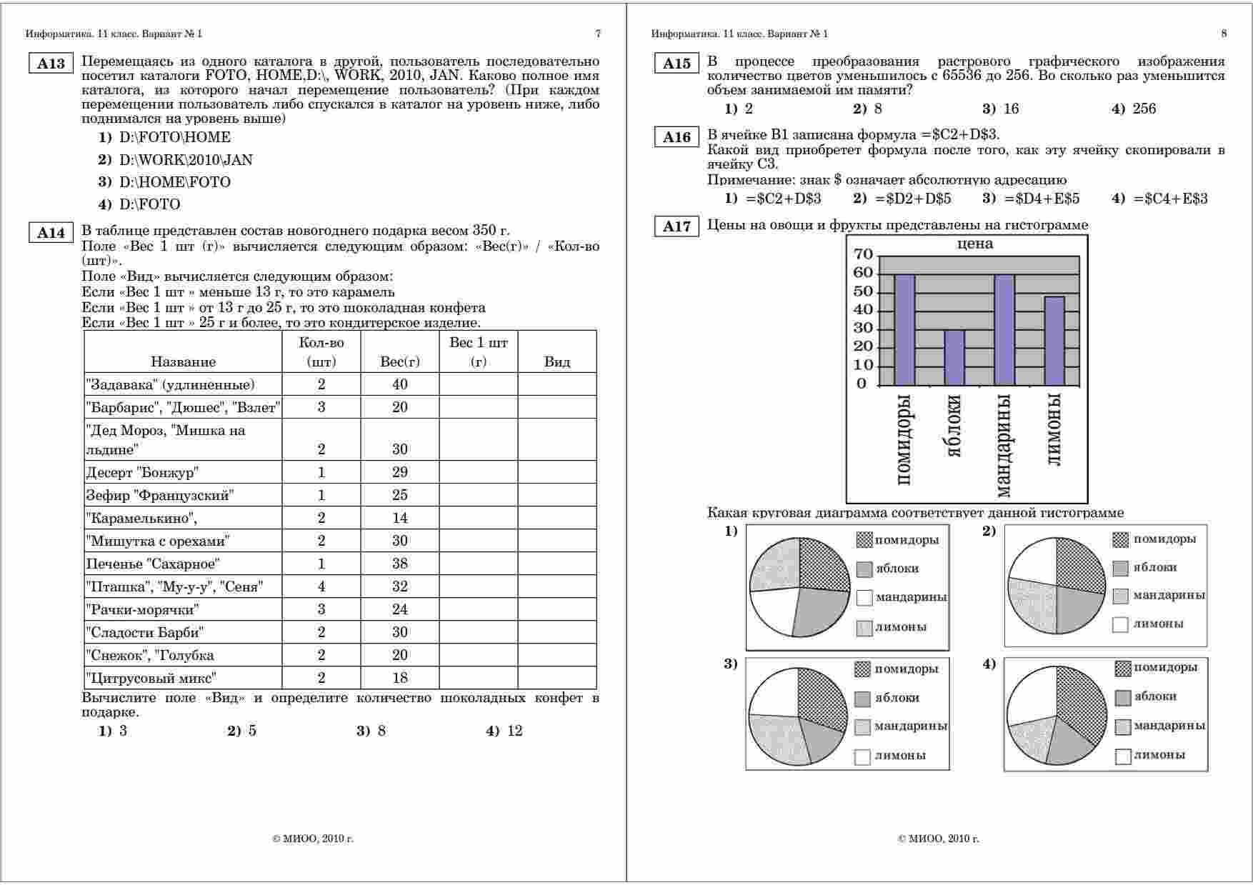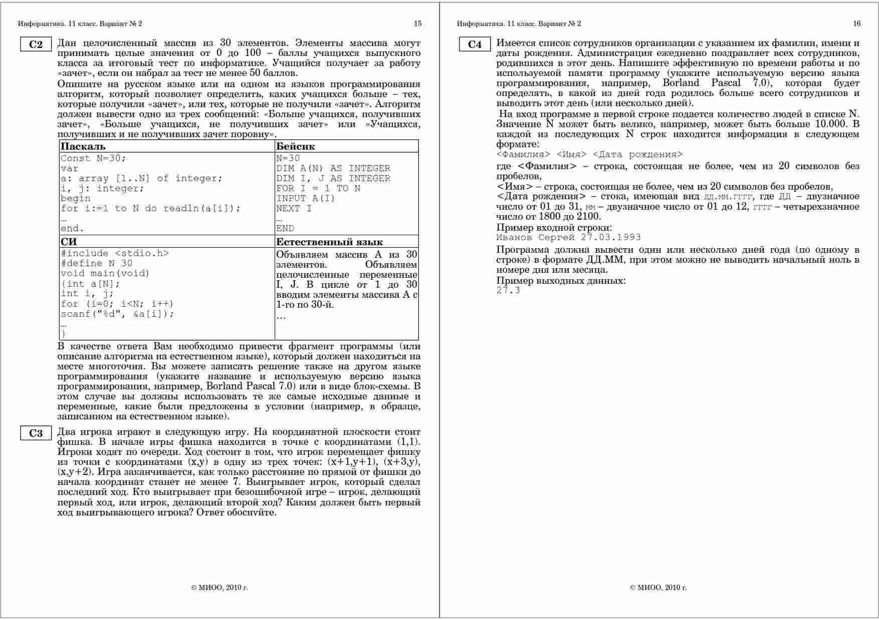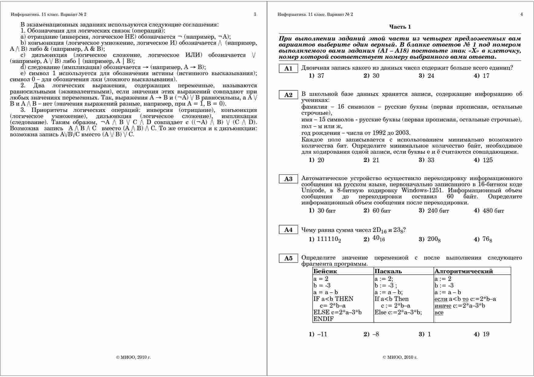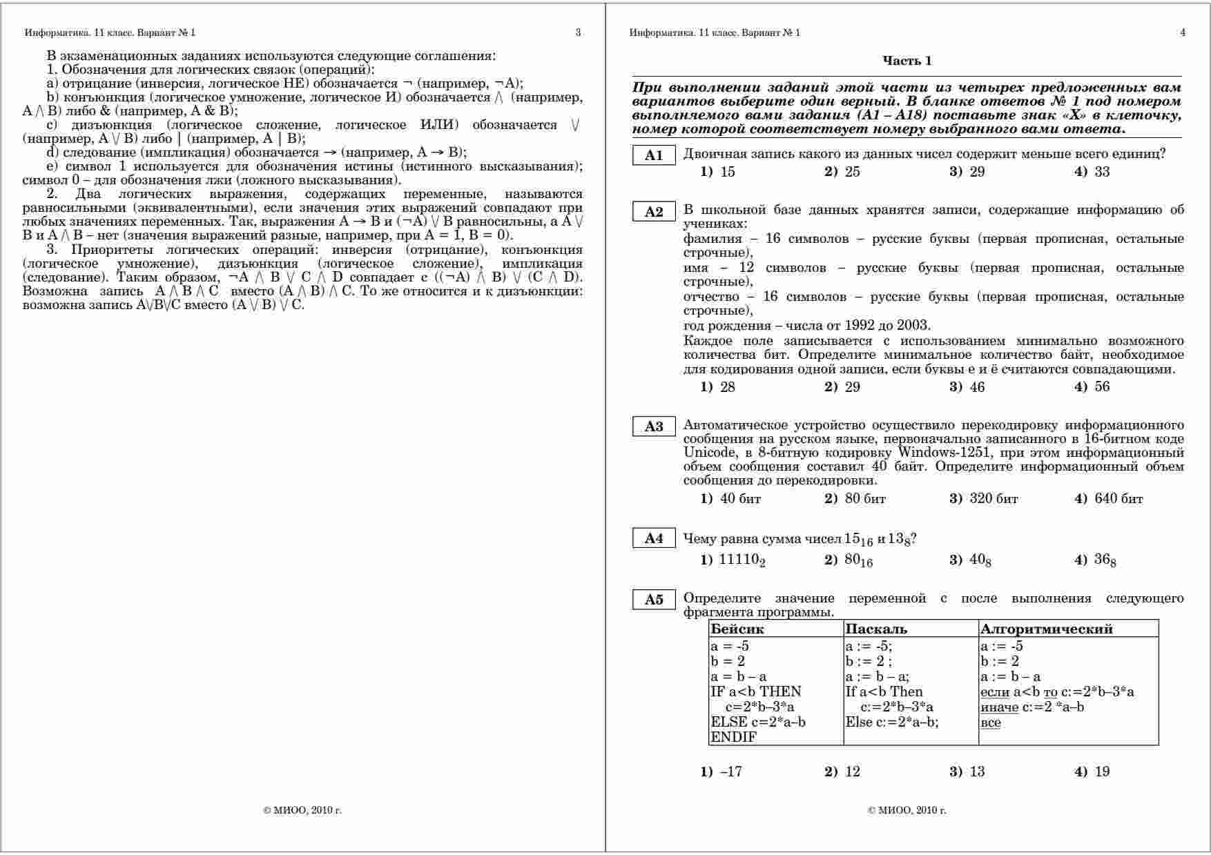 "ЕГЭ 2010 Информатика 11 класс Тренировочная работа 4 варианты 1-2 2010 год" – это незаменимый ресурс для подготовки к экзамену по информатике в 11 классе. Книга содержит четыре варианта тренировочных работ, разработанных в соответствии с требованиями ЕГЭ. Каждый из вариантов представляет собой полноценное тестирование, включающее в себя задания на программирование, алгоритмы и базовые понятия информатики. Это позволяет вам проверить свои знания и навыки в различных областях информатики и подготовиться к экзамену на высшем уровне. Книга также содержит подробные ответы и объяснения к каждому заданию, что поможет вам легко разобраться с трудными моментами и исправить ошибки. Вы сможете систематически улучшать свои результаты и повышать вероятность успешной сдачи ЕГЭ. Дата проведения тренировочных работ – 2010 год. Это идеальное время для системной подготовки к экзамену, и эта книга станет вашим надежным спутником в этом процессе.