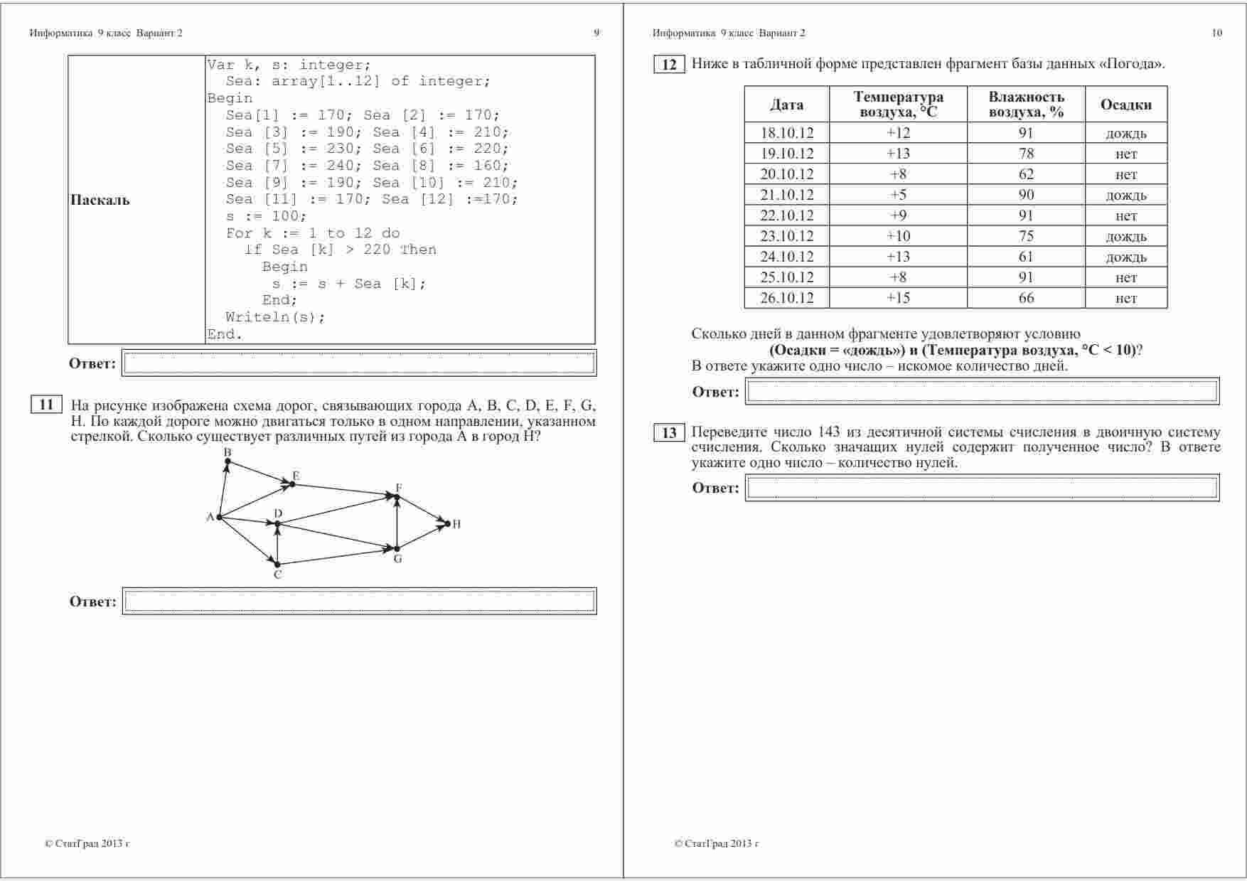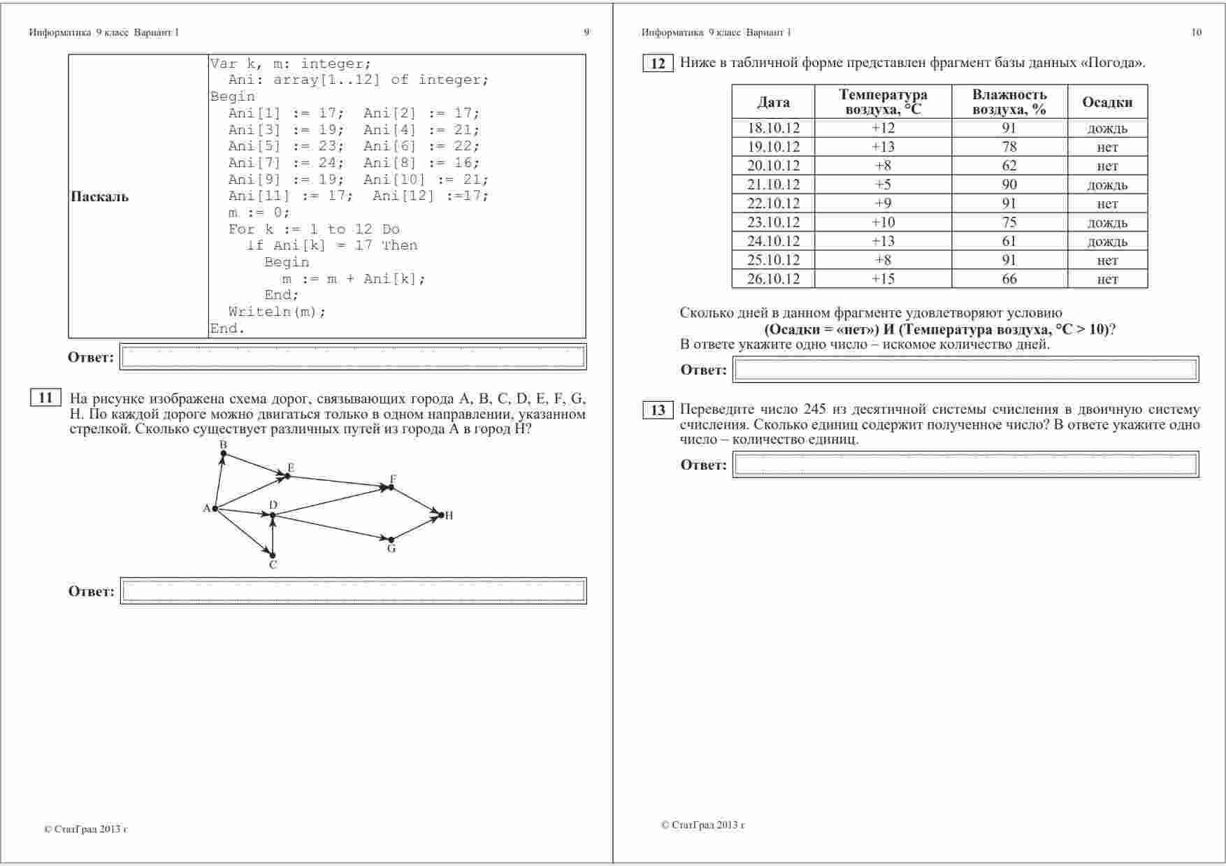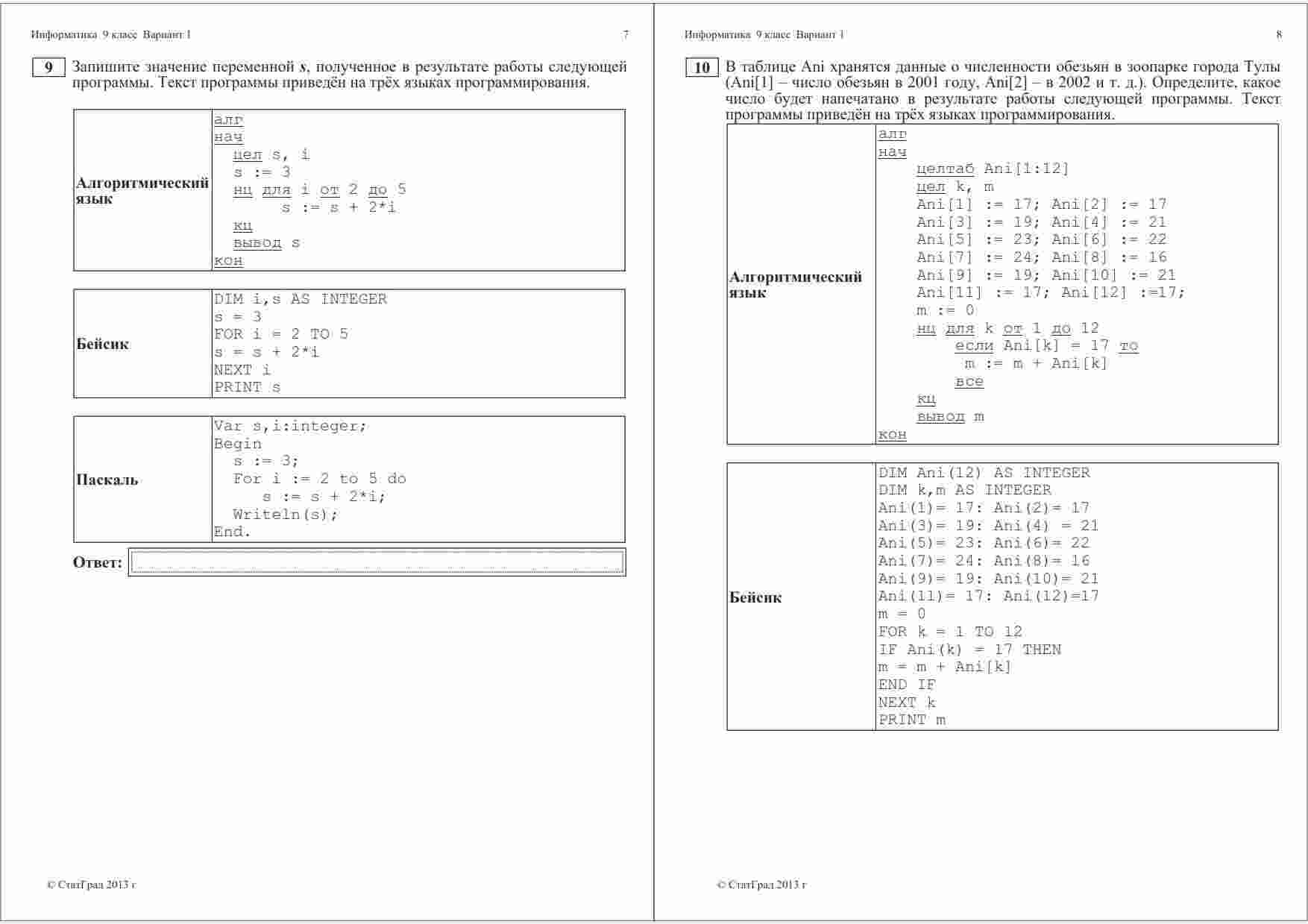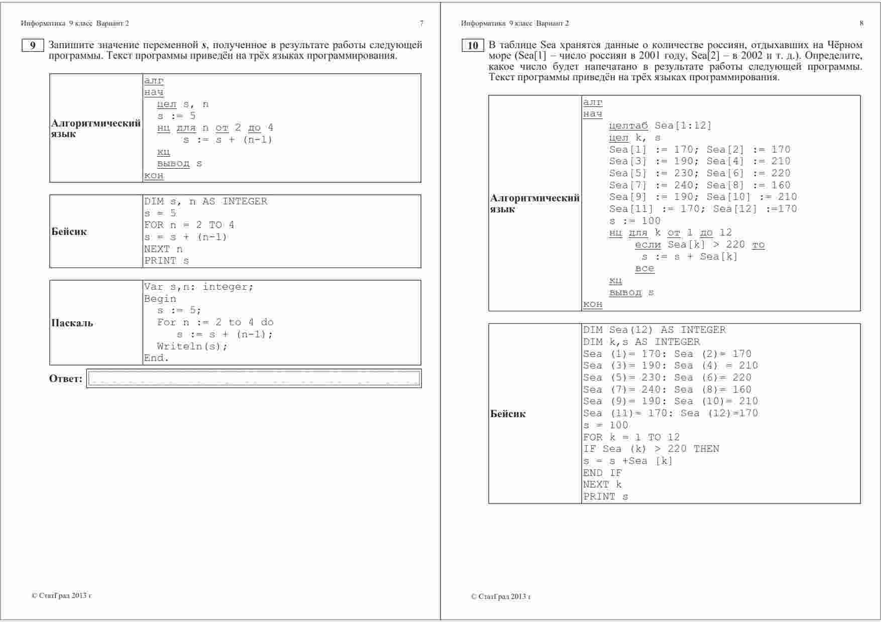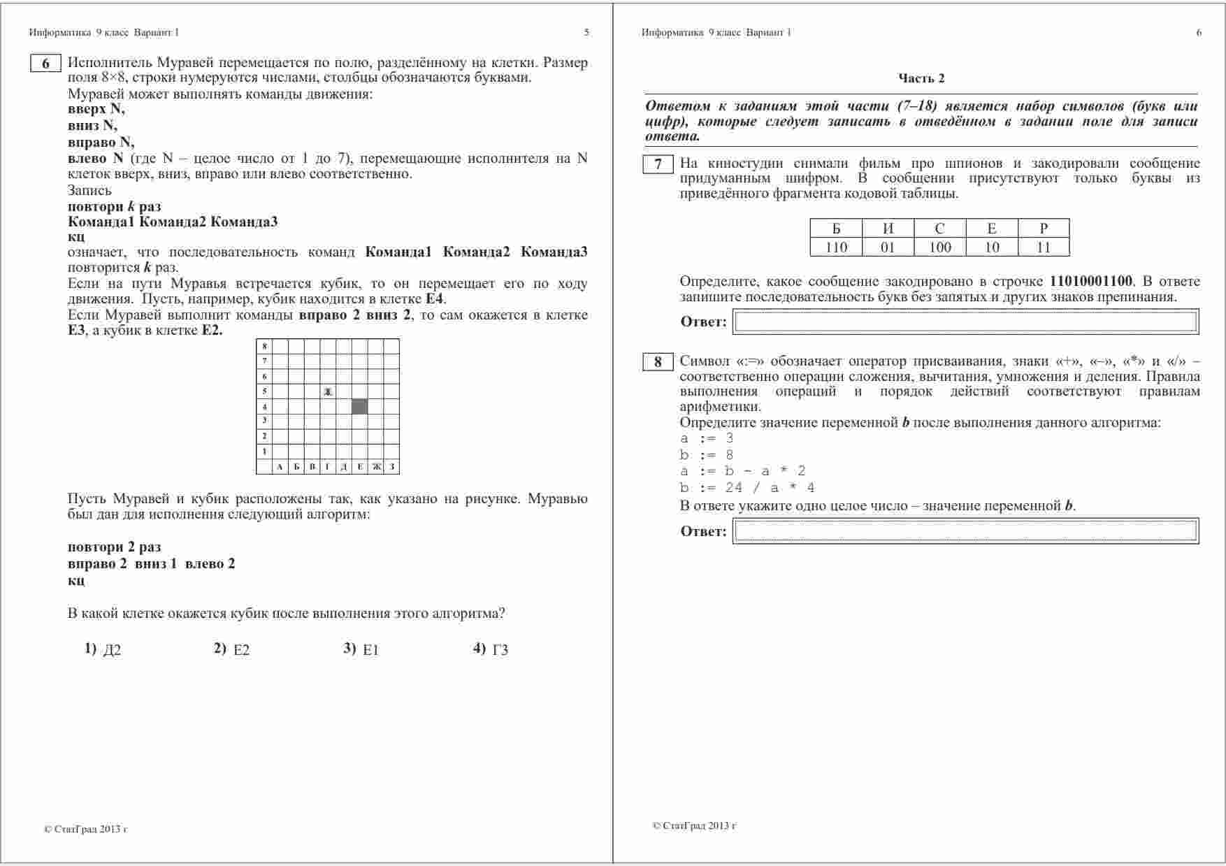 "ГИА 2013 Информатика 9 класс Тренировочная работа 2 варианты 1-2" представляет собой отличный ресурс для подготовки к Государственной итоговой аттестации по информатике. Книга содержит два варианта тренировочной работы, каждый из которых включает в себя 1-2 задания. Эти задания разработаны опытными преподавателями информатики и покрывают широкий спектр тем, включая программирование, алгоритмы, компьютерную безопасность и многое другое. Книга также предоставляет подробные ответы и пояснения к каждому заданию, что облегчит процесс самоподготовки. Эта тренировочная работа поможет ученикам оценить свои знания и навыки в области информатики и подготовиться к ГИА на высоком уровне.