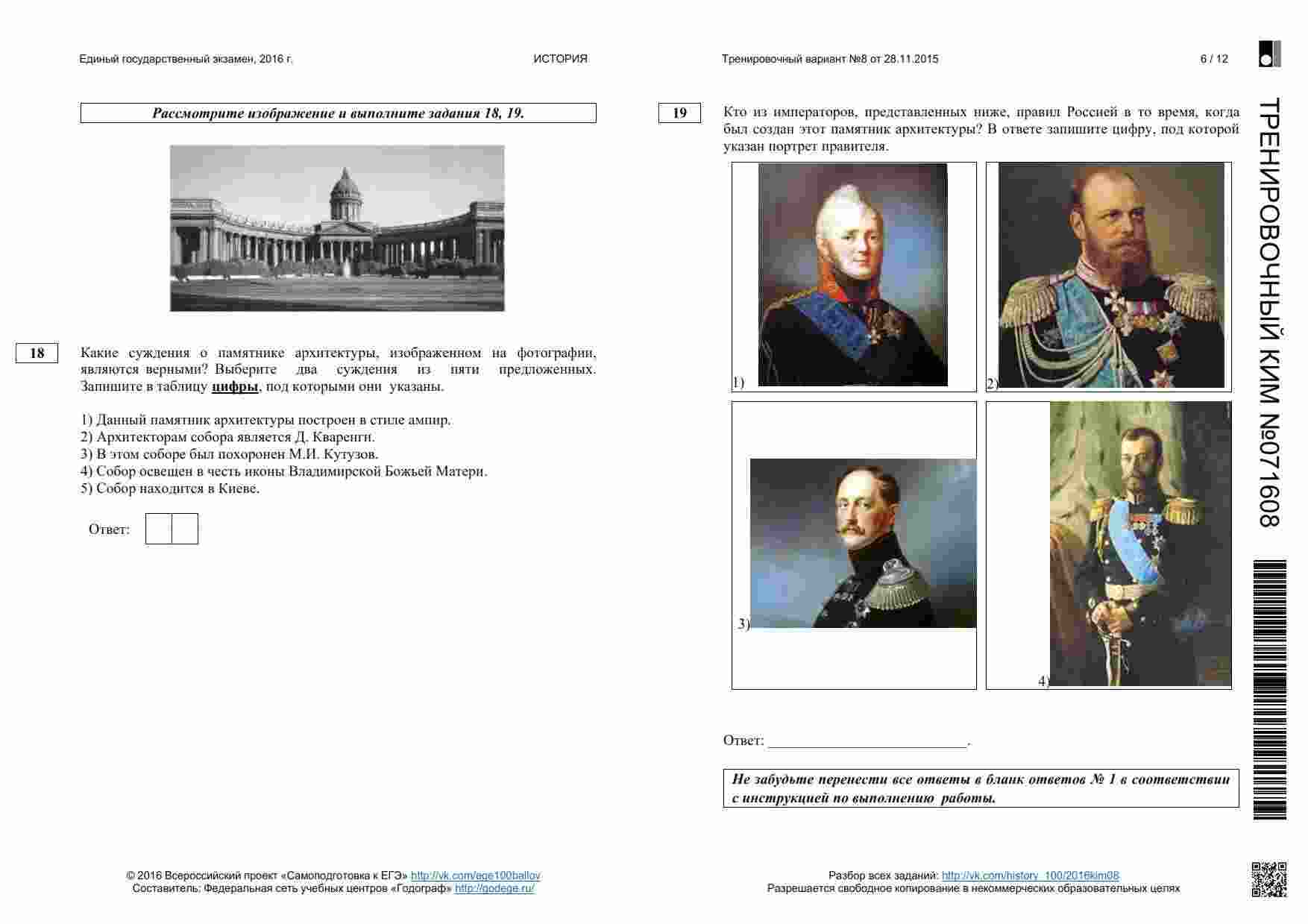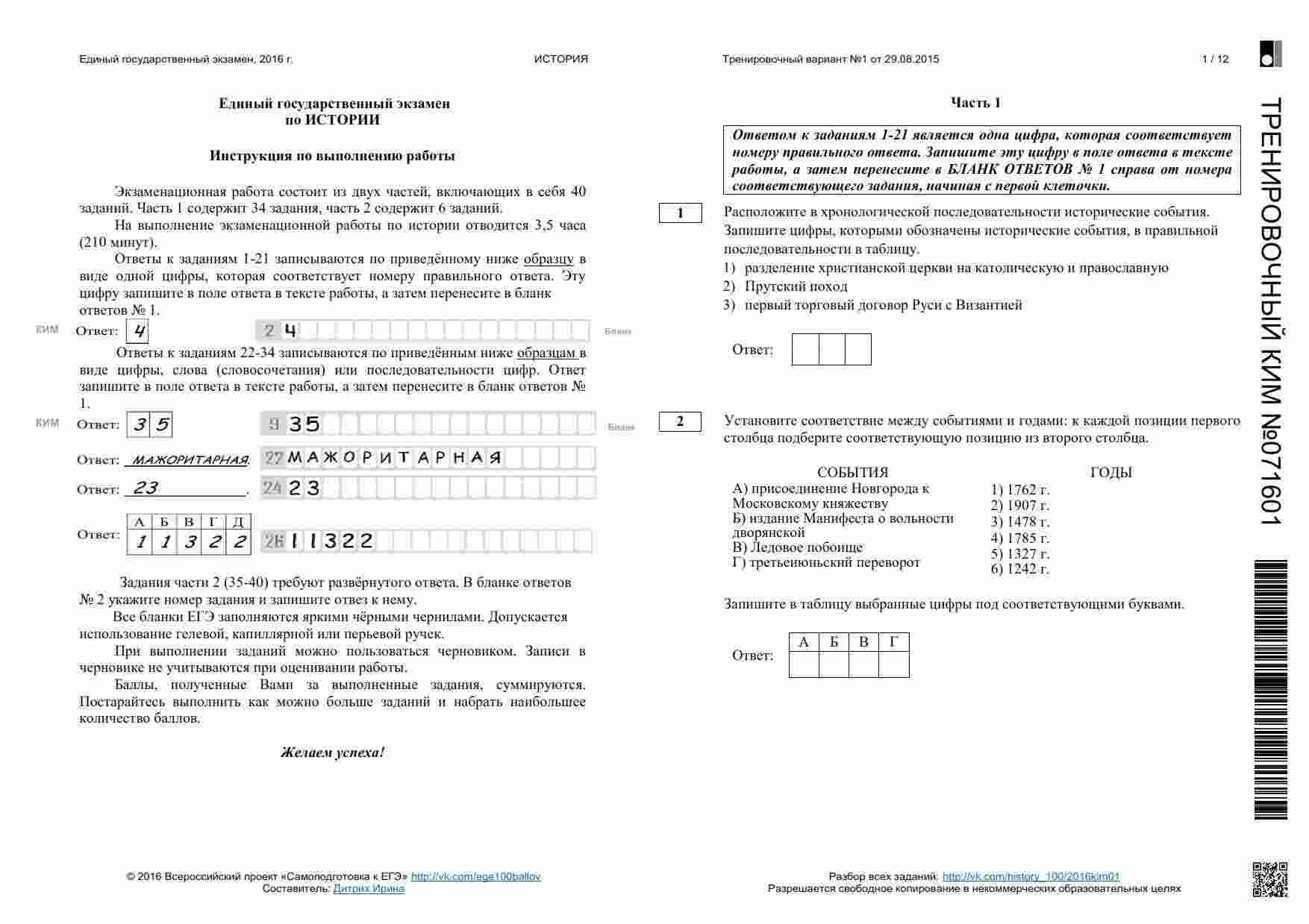 "ЕГЭ 2015 История 11 класс тренировочный вариант 1 с ответами" представляет собой комплексный тренировочный вариант для старшеклассников, готовящихся к сдаче ЕГЭ по истории. Эта книга предоставляет вам возможность практиковаться на разных аспектах истории и подготовиться к экзамену. Внутри книги вы найдете множество заданий и вопросов, охватывающих разные темы и периоды истории. Каждый вариант снабжен подробными ответами и пояснениями, что позволяет вам не только проверить свои знания, но и изучить материал более глубоко. Эта книга также включает в себя полные ответы на задания, что позволяет вам максимально эффективно использовать ее для подготовки. "ЕГЭ 2015 История 11 класс тренировочный вариант 1 с ответами" - ваш надежный помощник в подготовке к ЕГЭ и гарантия успешной сдачи экзамена.