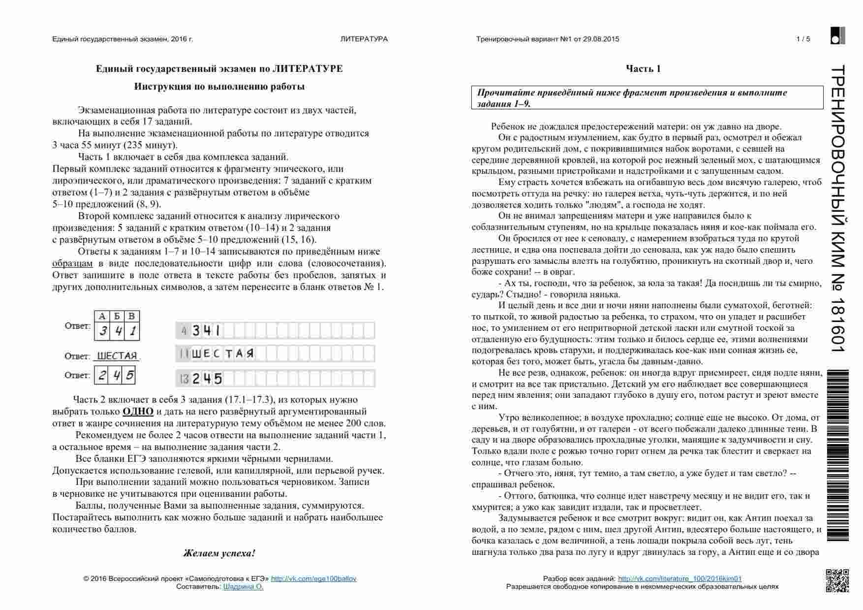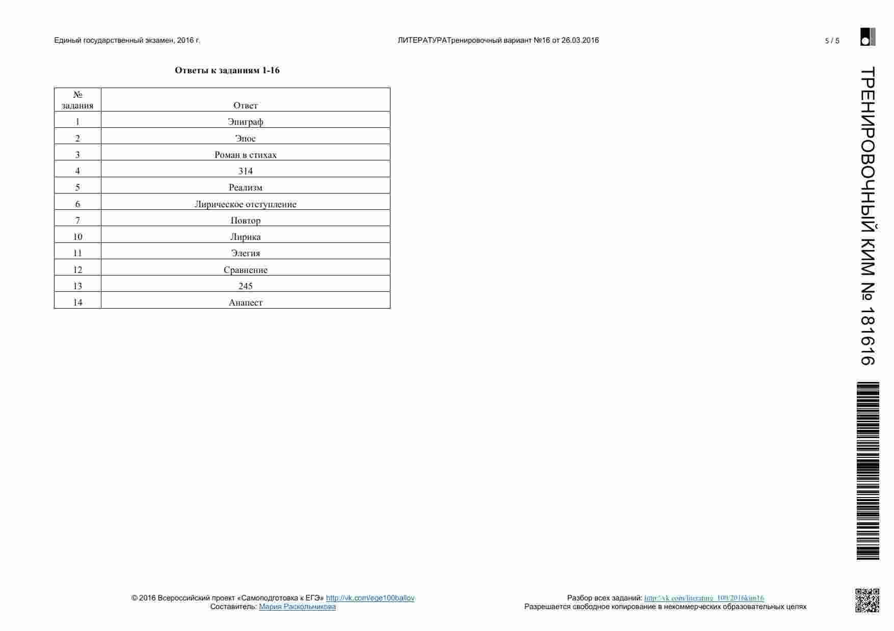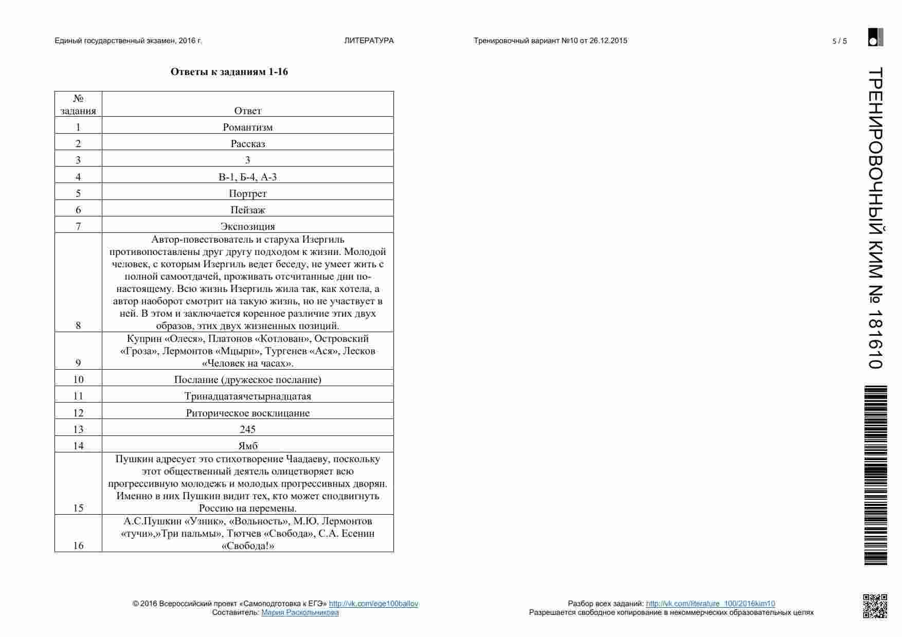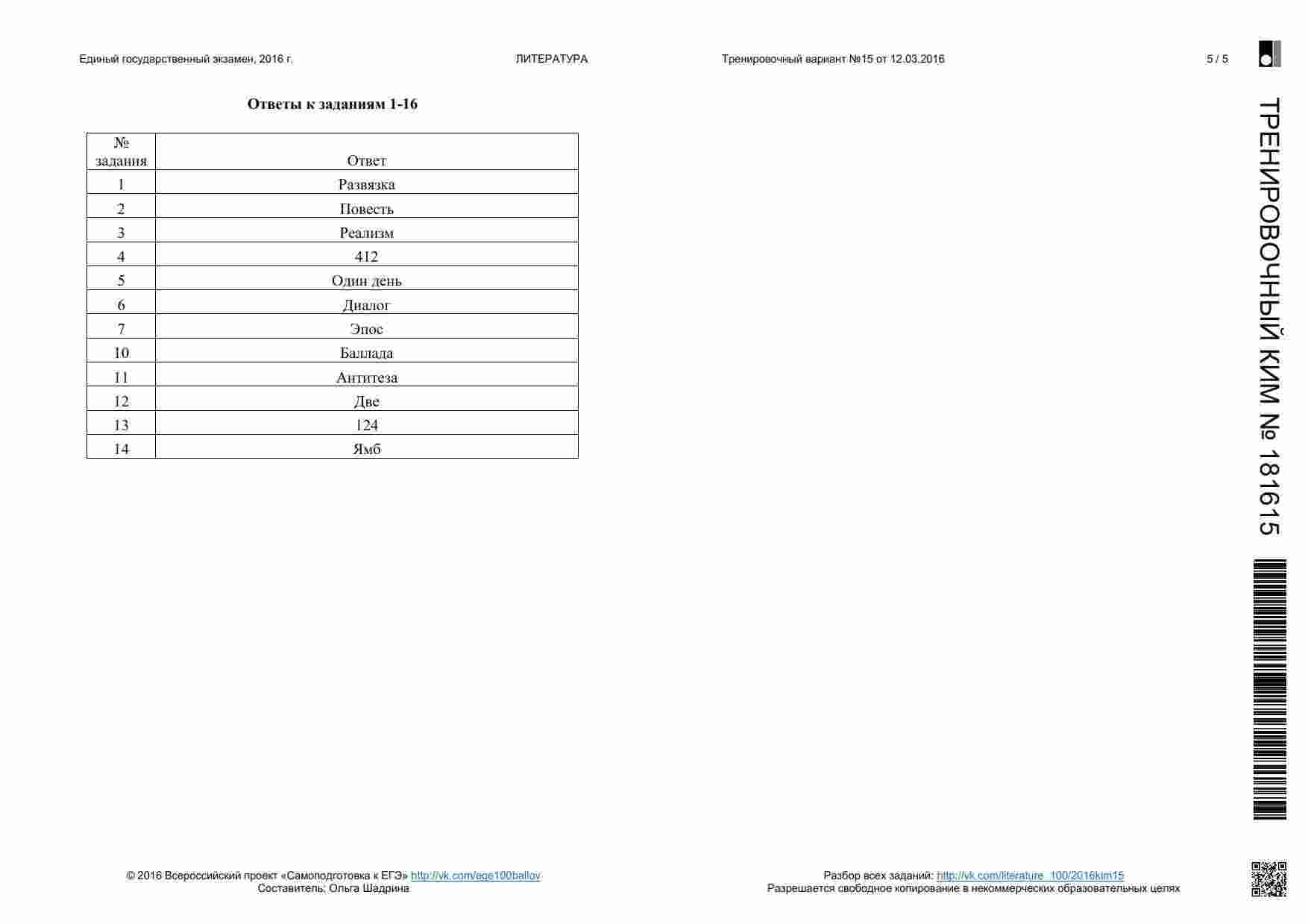 Книга "ЕГЭ 2016 Литература 11 класс. Тренировочные варианты 1-11, 13-19 с ответами. 08.2015-05.2016" представляет собой сборник тренировочных вариантов, разработанных для подготовки к ЕГЭ по литературе. Этот сборник охватывает широкий период времени и предоставляет вам множество возможностей для тренировки. Книга включает в себя разнообразные задания, аналогичные тем, которые вы встретите на настоящем экзамене. Она предоставляет вам широкий спектр материалов для тренировки анализа текстов, определения литературных приемов и аргументации ваших ответов. Каждый вариант снабжен подробными ответами и объяснениями. Эта книга подходит как для самостоятельной подготовки, так и для работы с учителем или репетитором. Она поможет вам развивать разные навыки, вырабатывать стратегию подхода к экзамену и повысить свой уровень уверенности перед ЕГЭ.