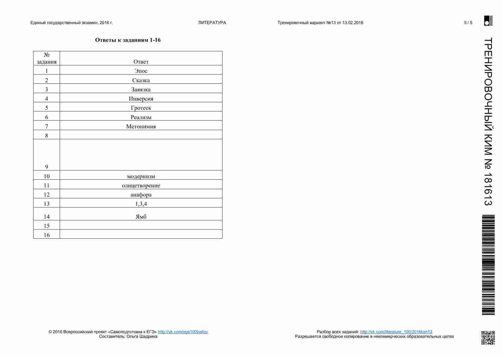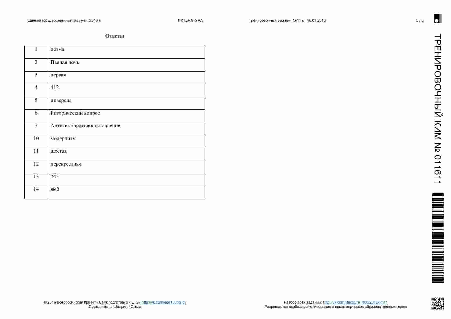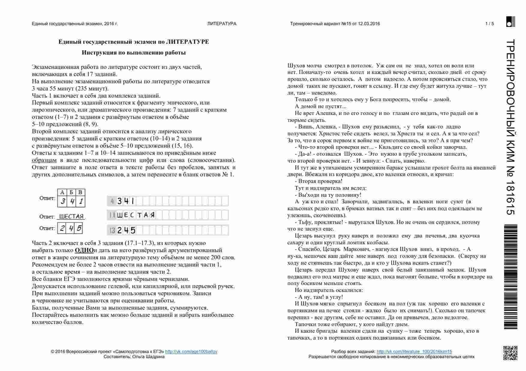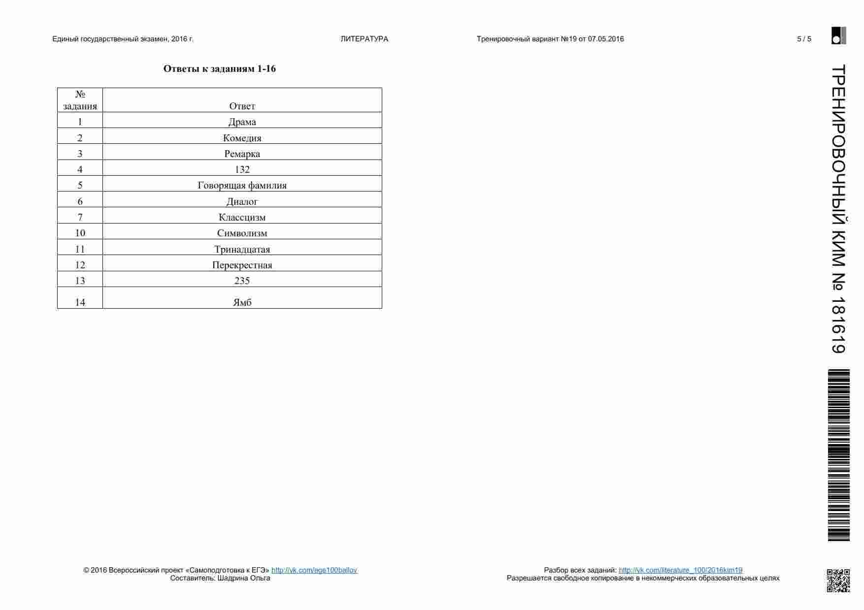 Книга "ЕГЭ 2016 Литература 11 класс. Тренировочные варианты 1-11, 13-19 с ответами. 08.2015-05.2016" представляет собой сборник тренировочных вариантов, разработанных для подготовки к ЕГЭ по литературе. Этот сборник охватывает широкий период времени и предоставляет вам множество возможностей для тренировки. Книга включает в себя разнообразные задания, аналогичные тем, которые вы встретите на настоящем экзамене. Она предоставляет вам широкий спектр материалов для тренировки анализа текстов, определения литературных приемов и аргументации ваших ответов. Каждый вариант снабжен подробными ответами и объяснениями. Эта книга подходит как для самостоятельной подготовки, так и для работы с учителем или репетитором. Она поможет вам развивать разные навыки, вырабатывать стратегию подхода к экзамену и повысить свой уровень уверенности перед ЕГЭ.