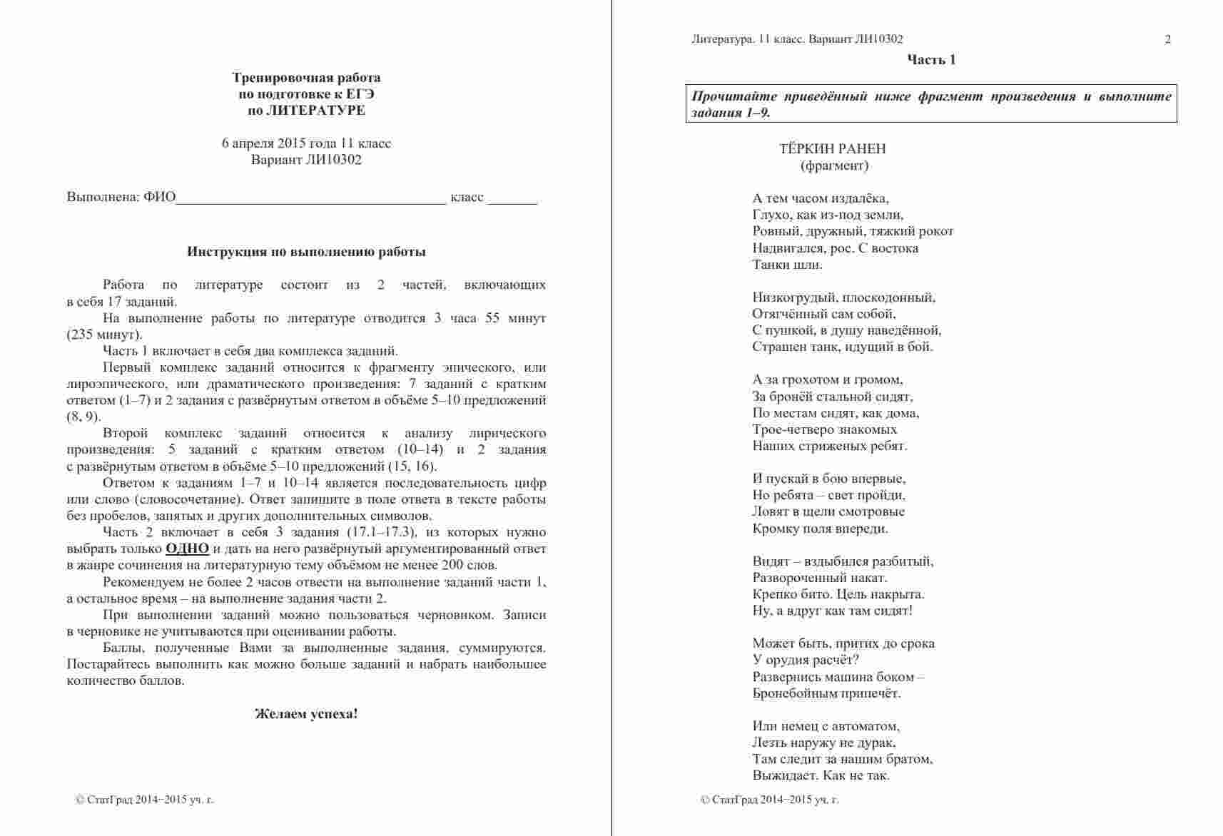 "ЕГЭ 2015 Литература 11 класс. Тренировочная работа 3. 06.04.2015. 235 минут. Ответы. Критерии. Вариант ЛИ10301-2" представляет собой третью тренировочную работу, разработанную для подготовки к ЕГЭ по литературе в 2015 году. Этот вариант ориентирован на полноценное тестирование ваших знаний и навыков. Книга включает в себя разнообразные задания, охватывающие разные аспекты литературного анализа. Вы сможете попрактиковаться в анализе текстов, определении литературных приемов и аргументации ваших ответов. Кроме того, в книге представлены подробные ответы и объяснения к каждому заданию, а также критерии оценивания. Работая с этой тренировочной работой, вы сможете оценить свой уровень подготовки и выявить слабые места в своих знаниях. Это позволит вам более эффективно распределить усилия в подготовке к ЕГЭ и повысить свои шансы на успешное сдачу экзамена.