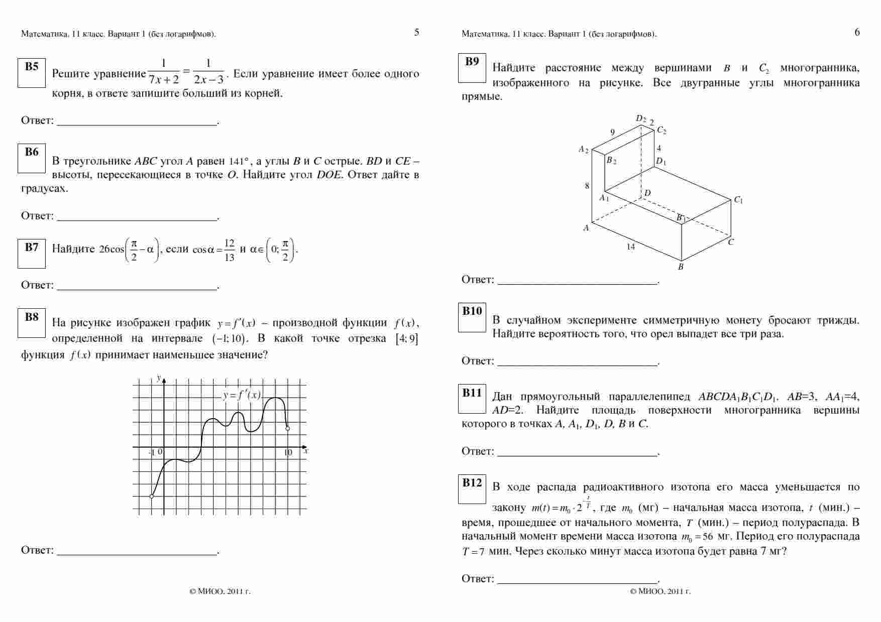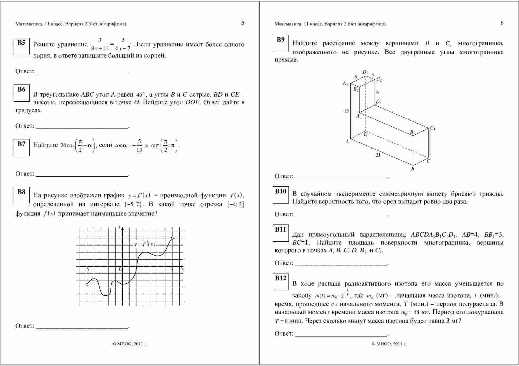 Книга "ЕГЭ 2011 Математика 11 класс. Контрольная работа 17.12.2011" представляет собой уникальный ресурс для учеников, готовящихся к сдаче экзамена ЕГЭ по математике. Эта книга включает в себя варианты 1-2 контрольной работы, полностью исключая задания, связанные с логарифмами. Каждое задание в этой книге тщательно разработано опытными экспертами в области математики и охватывает широкий спектр математических тем. Решая эти задачи, вы сможете улучшить свои навыки решения сложных математических задач и готовиться к успешной сдаче экзамена. Эта книга рекомендуется для всех учеников 11 классов, которые стремятся подготовиться к экзамену ЕГЭ по математике и достичь высоких результатов. Используйте эту книгу для тренировки и повышения своего уровня подготовки.