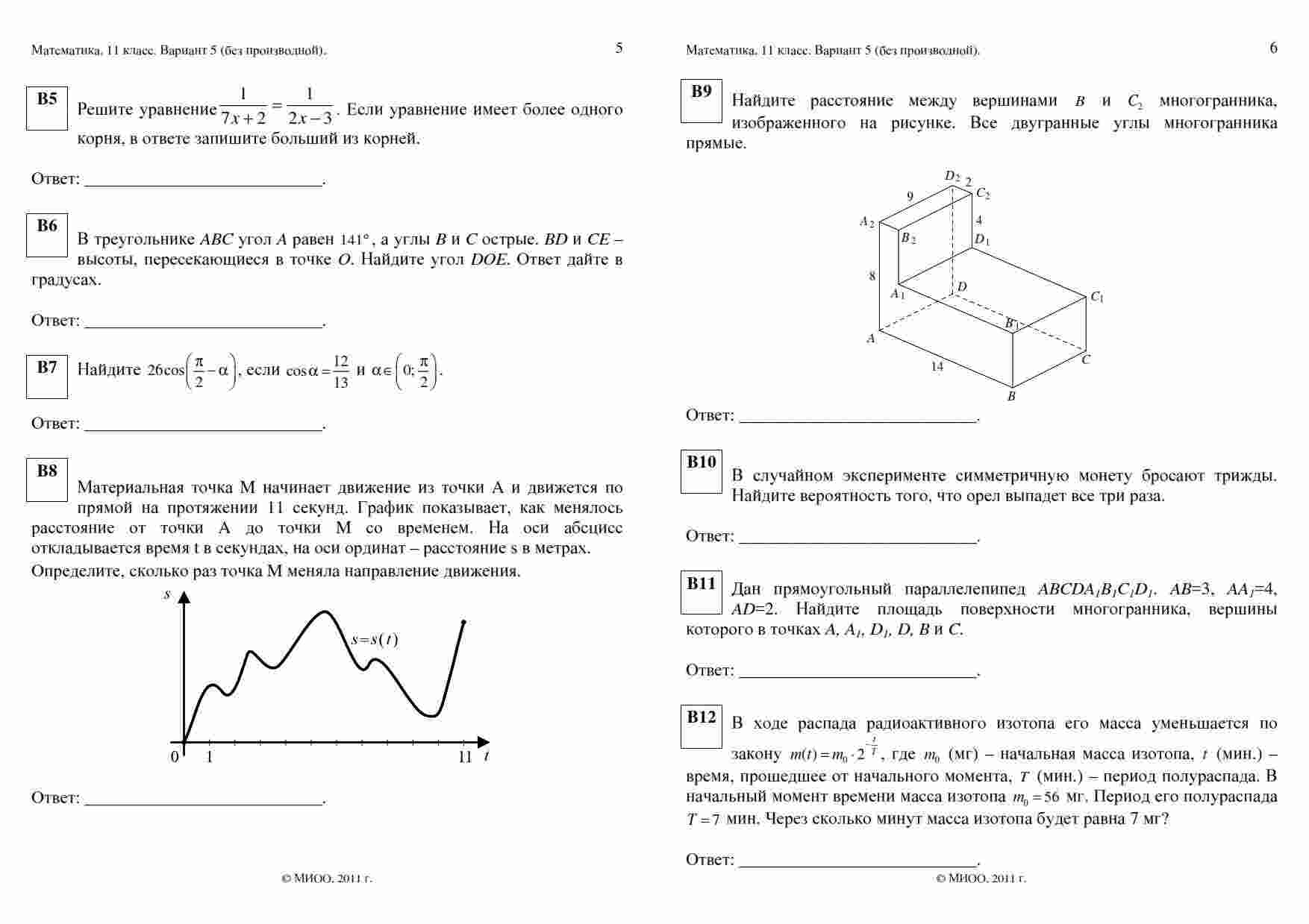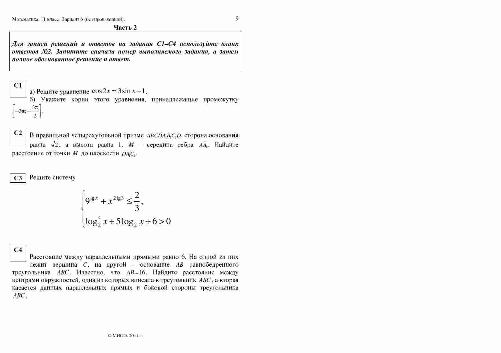 Книга "ЕГЭ 2011 Математика 11 класс. Контрольная работа 17.12.2011" представляет собой вторую часть контрольной работы, разработанной специально для подготовки к экзамену ЕГЭ по математике. В данной книге представлены варианты 5-6, исключая задания, связанные с производной. Эта книга станет незаменимым помощником для всех учеников 11 классов, готовящихся к экзамену. Каждое задание в ней тщательно разработано опытными математическими экспертами и охватывает различные аспекты математического материала, который может встретиться на экзамене. Работая с этой книгой, вы сможете улучшить свои навыки решения сложных математических задач и гарантировать успешную сдачу экзамена.