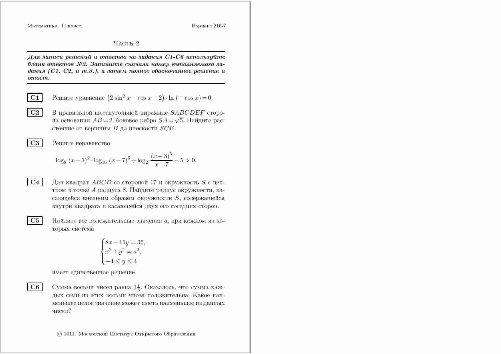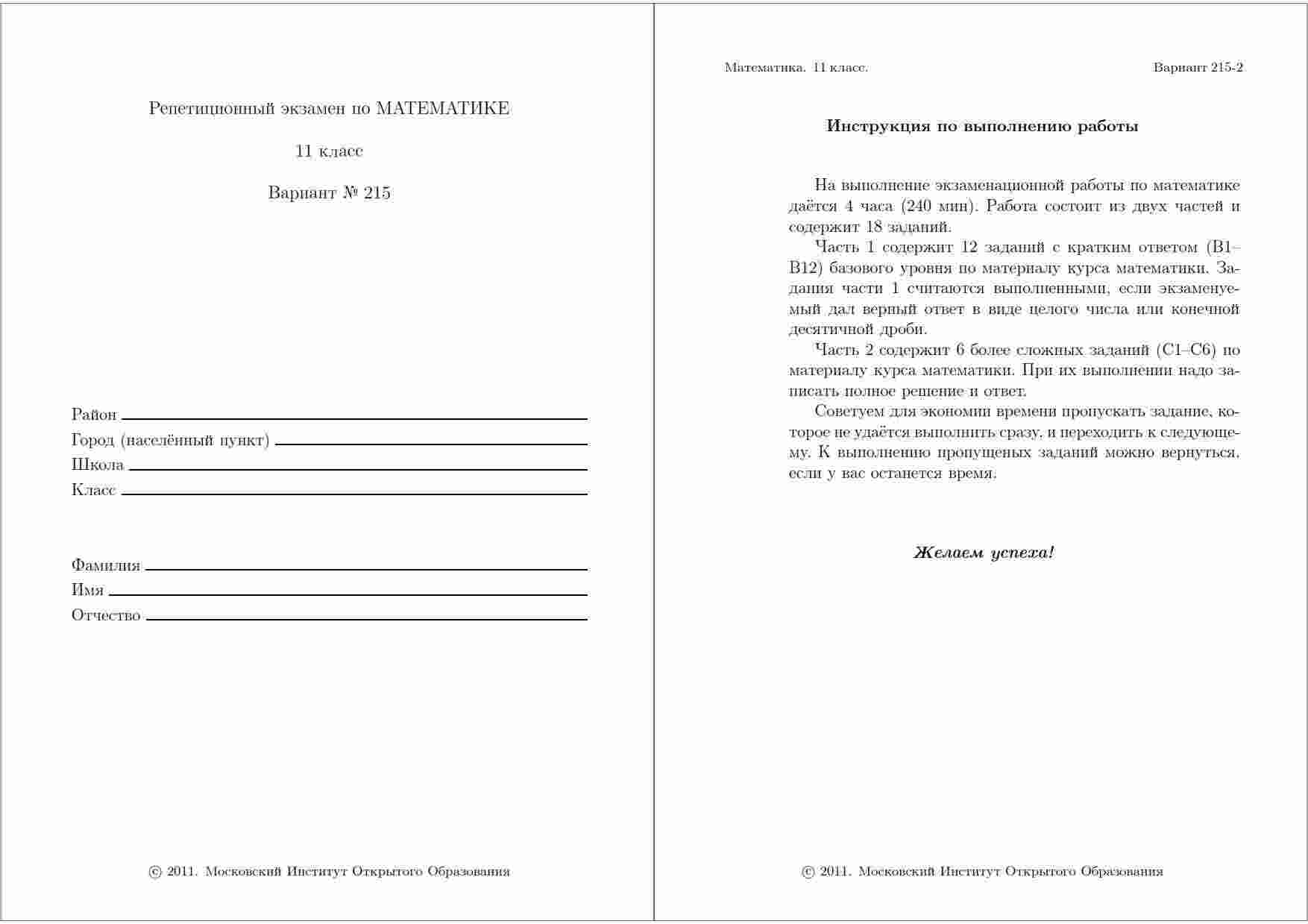 Если вы готовитесь к экзамену ЕГЭ по математике и ищете дополнительные пробные варианты, то эта книга - ваш идеальный выбор. Внутри вы найдете два разнообразных варианта, разработанных специально для подготовки к экзамену в 2011 году. Эти варианты соответствуют официальным требованиям ЕГЭ и позволяют вам практиковаться на различных типах заданий. Подробные ответы и разъяснения к каждой задаче помогут вам лучше понять методику решения и улучшить свои навыки. Подготовьтесь к экзамену с уверенностью и достигните высоких результатов благодаря этой книге. Улучшите свои навыки и станьте готовыми к сложным заданиям экзамена.