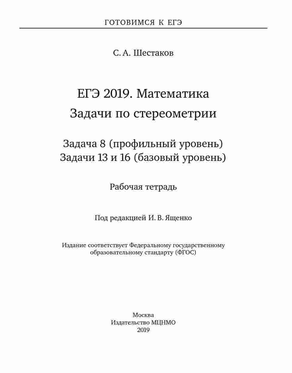 Книга "ЕГЭ 2019 Математика Задача 8" представляет собой неоценимый ресурс для подготовки к экзамену ЕГЭ по математике. Авторы, Шестаков и Ященко, предлагают подробные разборы и решения задачи 8, которая связана с темой "Задачи по стереометрии". Книга доступна как для базового, так и для профильного уровней. Внутри вы найдете 16 задач, каждая из которых разбирается детально и пошагово. Вы научитесь решать задачи по стереометрии, используя геометрические и аналитические методы. Это поможет вам успешно справиться с этой частью экзамена и повысить свой уровень подготовки.