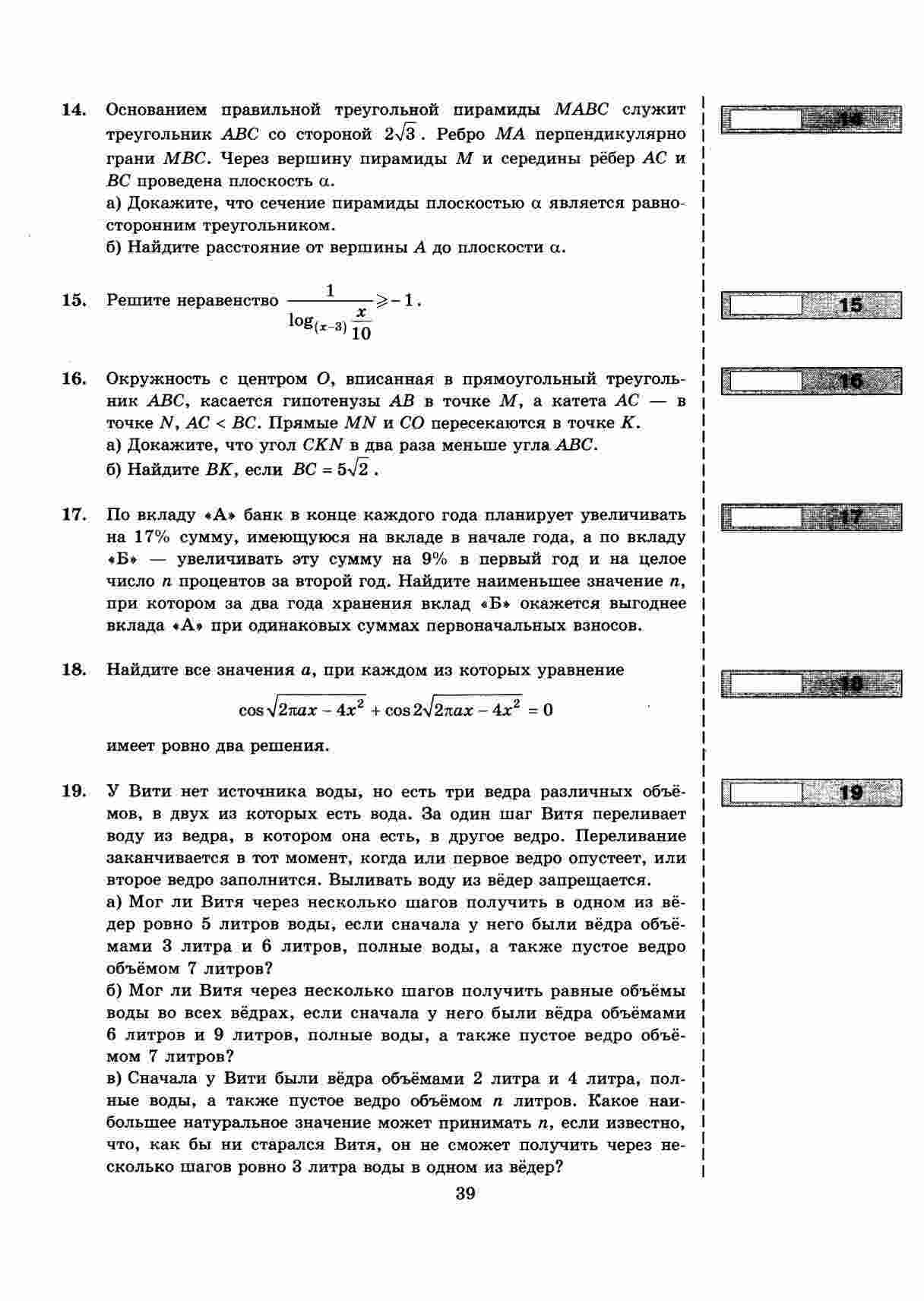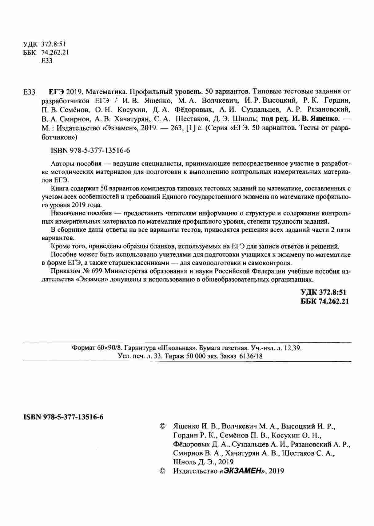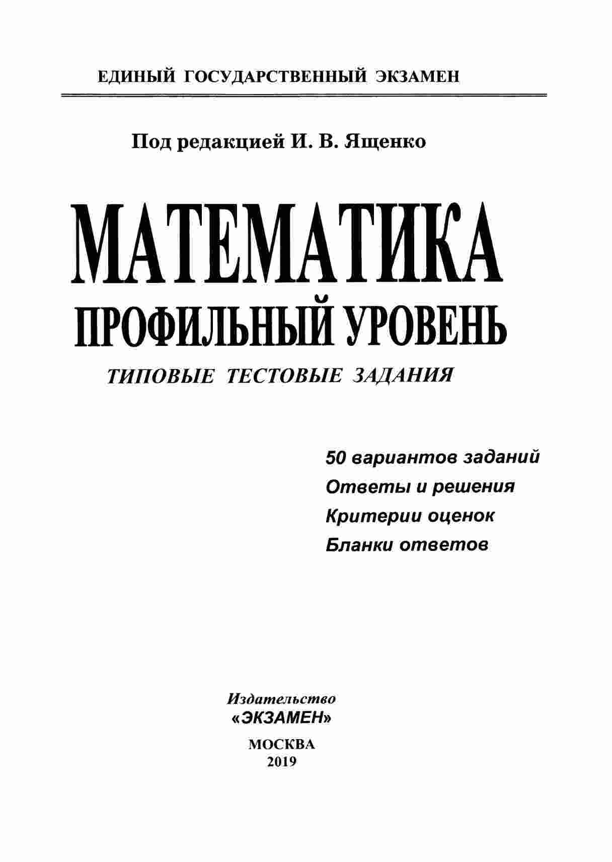 "ЕГЭ 2019 Математика Профильный уровень" - это сборник из 50 вариантов типовых тестовых заданий для подготовки к экзамену ЕГЭ по математике на профильном уровне. Авторы, Ященко и Волчкевич, предоставляют разнообразные задания, которые помогут вам максимально подготовиться к экзамену. Каждый вариант содержит типичные задачи, а также дополнительные упражнения. Вы сможете пройти большое количество тестов и уверенно сдать экзамен.