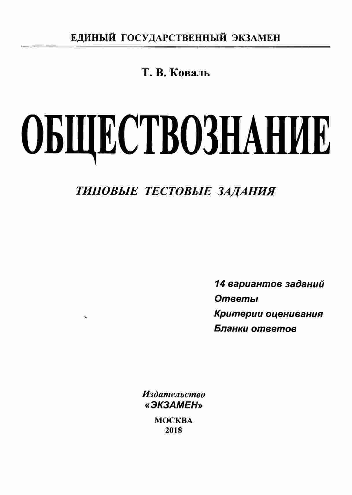 Книга "ЕГЭ 2018 Обществознание 14 вариантов Типовые тестовые задания" от автора Коваль представляет собой исчерпывающую коллекцию тестовых заданий, разработанных для подготовки к экзамену ЕГЭ по обществознанию. Содержащая 14 вариантов заданий, она предоставляет вам возможность попрактиковаться в решении разнообразных задач из области политики, экономики, социологии и права. Каждый вариант тщательно разработан, чтобы соответствовать структуре и сложности реального экзамена. Книга начинается с краткого введения, в котором автор предоставляет советы по стратегии и подходу к решению заданий. Затем следуют сами варианты с подробными ответами и объяснениями, что позволяет вам проверить свои знания и изучить ошибки. Эта книга станет вашим надежным партнером в подготовке к ЕГЭ по обществознанию и поможет вам уверенно сдать экзамен.