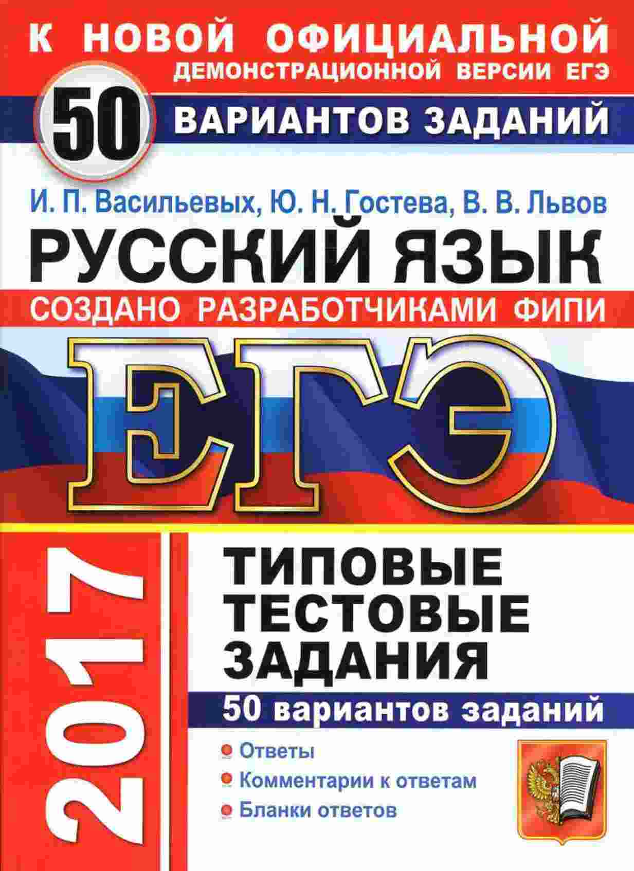 "ЕГЭ 2017 Русский язык. 50 вариантов типовых тестовых заданий Васильевых Гостева Львов" - это обширный набор заданий, созданных в соответствии с форматом экзамена по русскому языку. Книга предлагает 50 разнообразных вариантов тестовых заданий для тренировки и подготовки к ЕГЭ. Что вы найдете внутри: Тесты разной сложности, охватывающие все аспекты русского языка. Подробные ответы и объяснения к каждому заданию. Уникальные методики и приемы решения тестов. Возможность тренироваться и повышать свой уровень подготовки. С этой книгой вы сможете эффективно тренироваться перед экзаменом, улучшить навыки решения тестов и достичь высоких результатов на ЕГЭ.