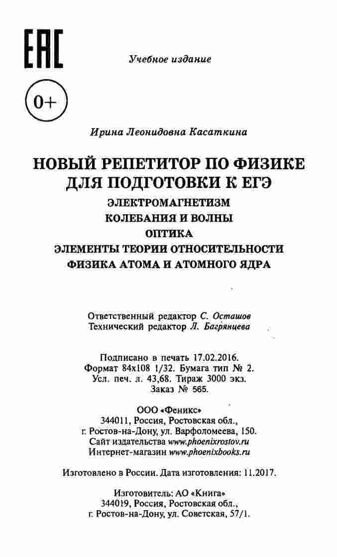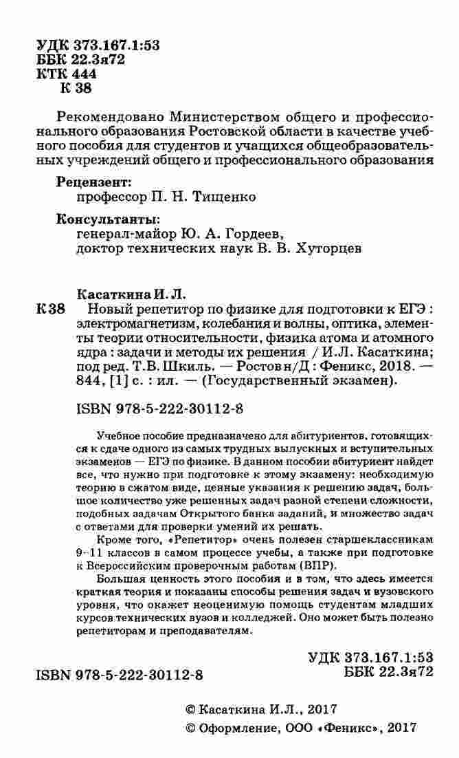 Этот учебник представляет собой незаменимый инструмент для подготовки к ЕГЭ по физике. Автор Касаткина предоставляет подробные объяснения и решения задач в области электромагнетизма, колебаний и волн. Каждый раздел тщательно структурирован, чтобы помочь студентам освоить ключевые концепции и методы решения задач. В частности, учебник покрывает электростатику и электродинамику, волновую оптику и основы колебаний. Все материалы сопровождаются многочисленными иллюстрациями и примерами, что делает их более доступными и понятными. Книга также включает практические советы по подготовке к ЕГЭ и стратегии решения типовых задач, что делает ее неотъемлемым помощником для абитуриентов, стремящихся достичь выдающихся результатов на экзамене.
