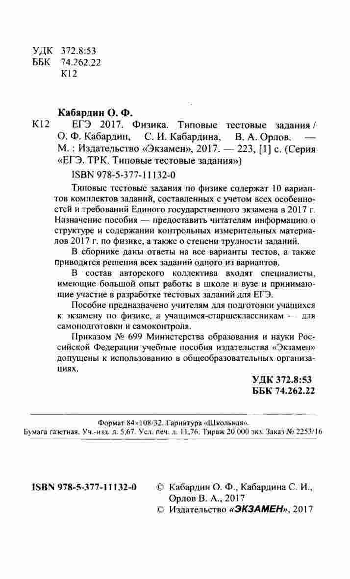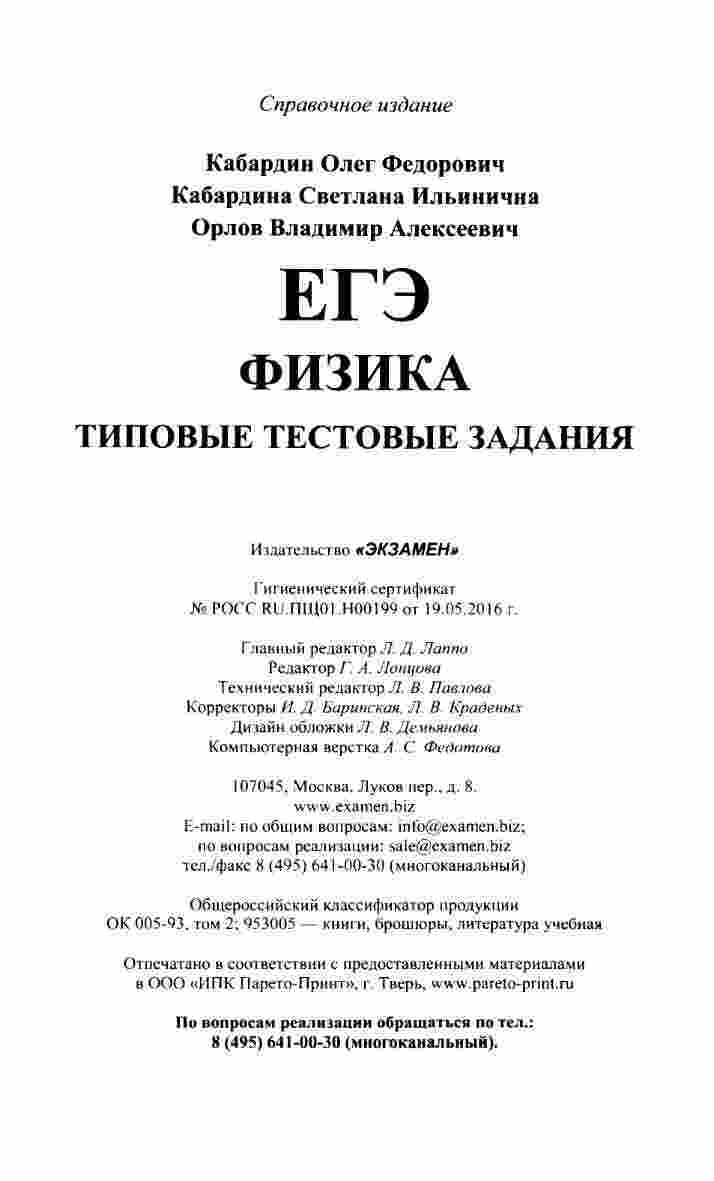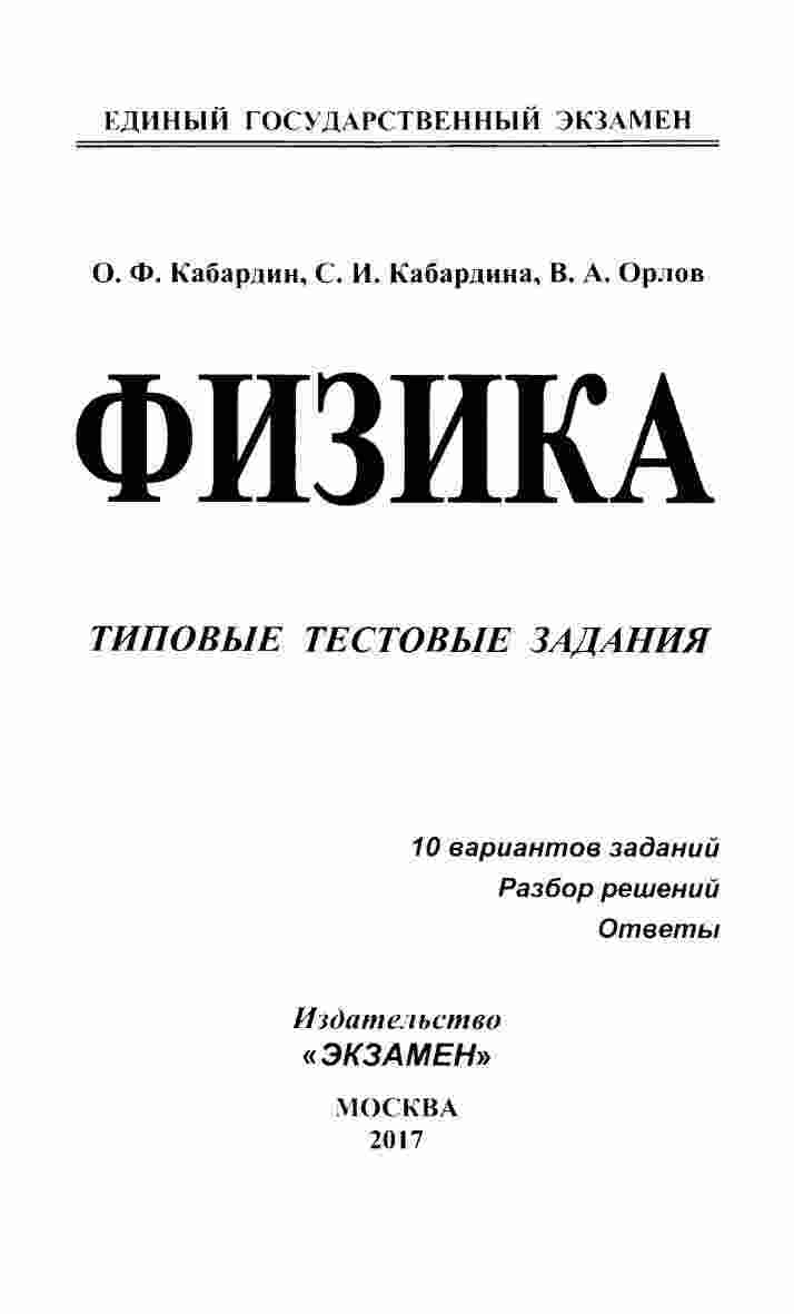 "ЕГЭ 2017 Физика Типовые тестовые задания" от Кабардина, Кабардина и Орлова представляют собой полезный источник для подготовки к ЕГЭ по физике. Книга включает в себя 10 вариантов типовых тестовых заданий, специально разработанных для тренировки и проверки ваших знаний. Каждый вариант представляет собой набор разнообразных задач, позволяющих вам оценить свои навыки в решении различных типов заданий, а также проверить знания по всем темам физики. Книга снабжена подробными ответами и пошаговыми решениями, что позволяет вам самостоятельно контролировать свой прогресс и улучшать навыки. С этой книгой вы сможете эффективно готовиться к ЕГЭ и повысить свои шансы на успешную сдачу экзамена.