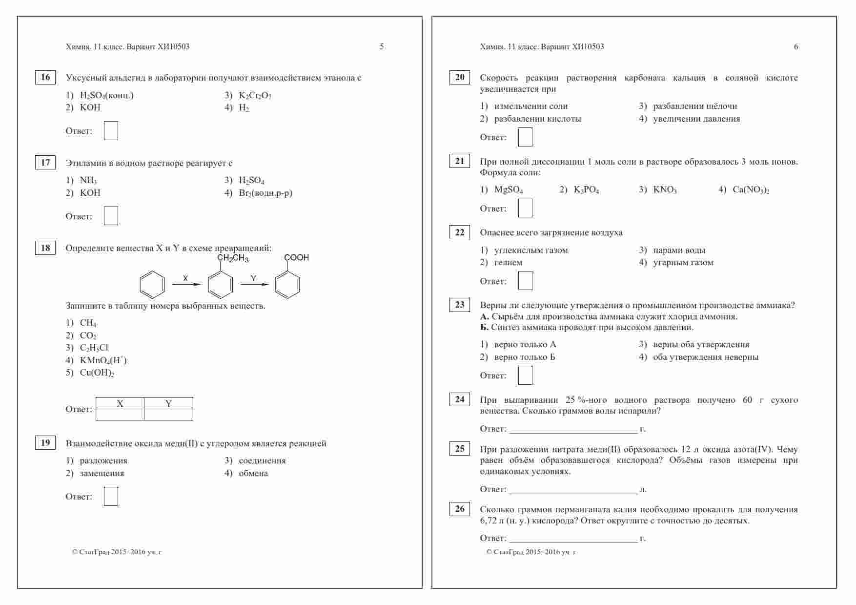 "ЕГЭ по химии 11 класс тренировочная работа 5" - еще одно незаменимое средство для подготовки к сдаче экзамена по химии. Эта пятая тренировочная работа из серии разработана для 11-го класса и предназначена для помощи вам в достижении высоких результатов на ЕГЭ. Дата проведения этой тренировочной работы - 10 мая 2016 года, что делает ее актуальной для современных экзаменов. Время на выполнение увеличено до 210 минут, чтобы предоставить вам больше времени на размышление и решение задач. Вариант ХИ10503-4 разработан экспертами в области химии и полностью соответствует официальным требованиям ЕГЭ. Он включает в себя широкий спектр заданий, покрывающих все аспекты химии, включая химию элементов, органическую химию и химические реакции. Книга также содержит подробные решения и объяснения заданий, что позволит вам легко учиться из своих ошибок и улучшать свои навыки. Вы сможете понять, как эффективно решать различные типы задач и действовать с уверенностью на экзамене. Подготовка к ЕГЭ - это серьезное дело, и "ЕГЭ по химии 11 класс тренировочная работа 5" поможет вам достичь желаемых результатов. Вложите усилия в подготовку, и вы увидите, как рост вашей уверенности в своих знаниях приведет к успеху на экзамене.