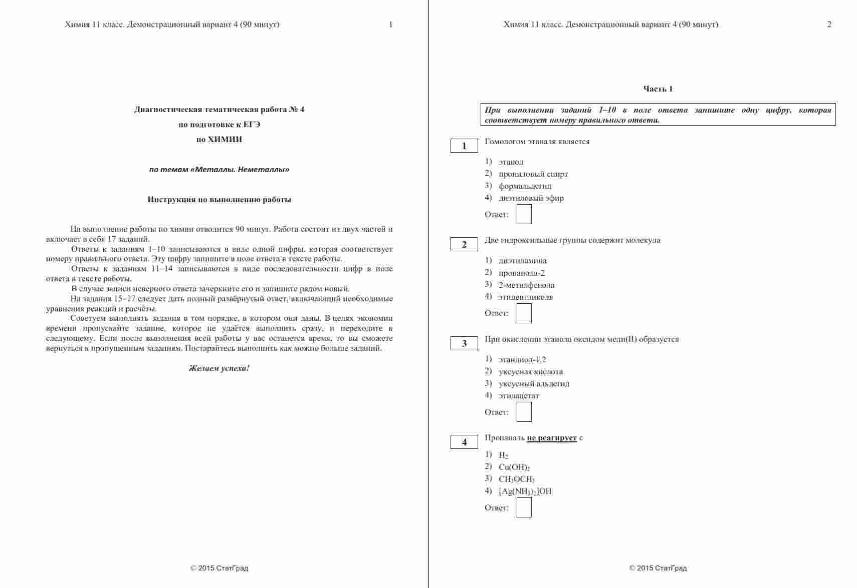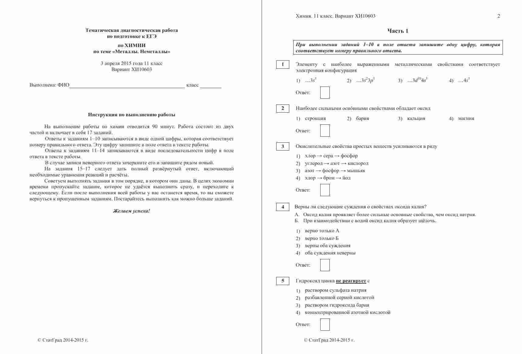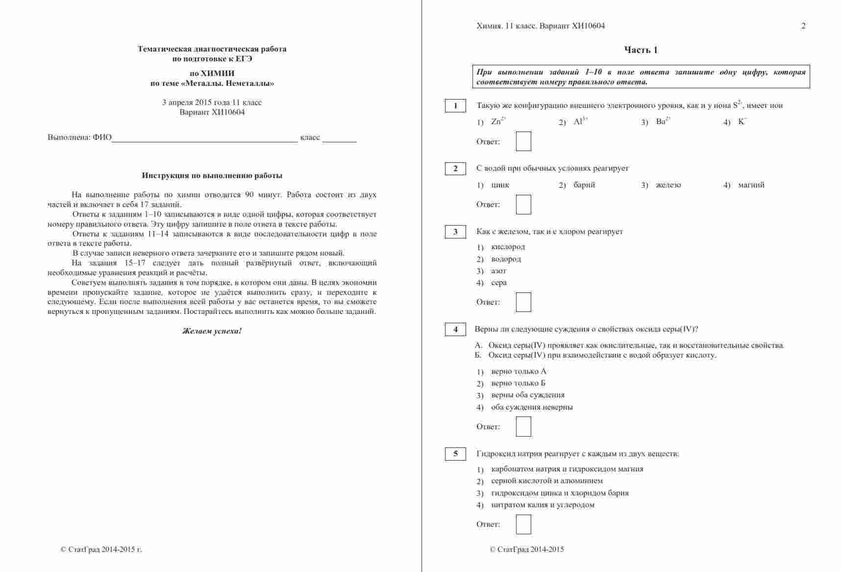 "ЕГЭ по химии 2015 год 11 класс тема 3 Металлы" - это уникальный вариант тренировочной работы, сфокусированный на важной теме химии - металлах. Эта книга поможет вам углубить свои знания и подготовиться к экзамену ЕГЭ. Дата проведения этой тренировочной работы - 3 апреля 2015 года, что делает ее актуальной для подготовки к современным экзаменам. Вариант ХИ10603-4 разработан с учетом официальных требований ЕГЭ и включает в себя задания, охватывающие основы химии металлов и их свойства. Книга также содержит подробные ответы и критерии оценивания, что поможет вам самостоятельно проверять свои ответы и разбираться в оценках на экзамене. Это важно для повышения своей уверенности и эффективной подготовки. Тема "Металлы" имеет большое значение в химии, и знание ее основ необходимо для успешной сдачи ЕГЭ. Эта книга поможет вам углубить свои знания и готовиться к экзамену с уверенностью.